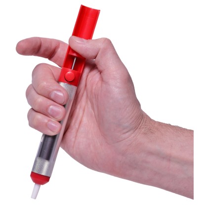 A szivattyú masszív műanyagból és fémből készült, súlya mindössze 30 gramm, és könnyen kezelhető. Kiválóan alkalmas precíz munkavégzéshez, különösen alkatrészek kiforrasztásához és a felesleges forrasztóanyag eltávolításához.