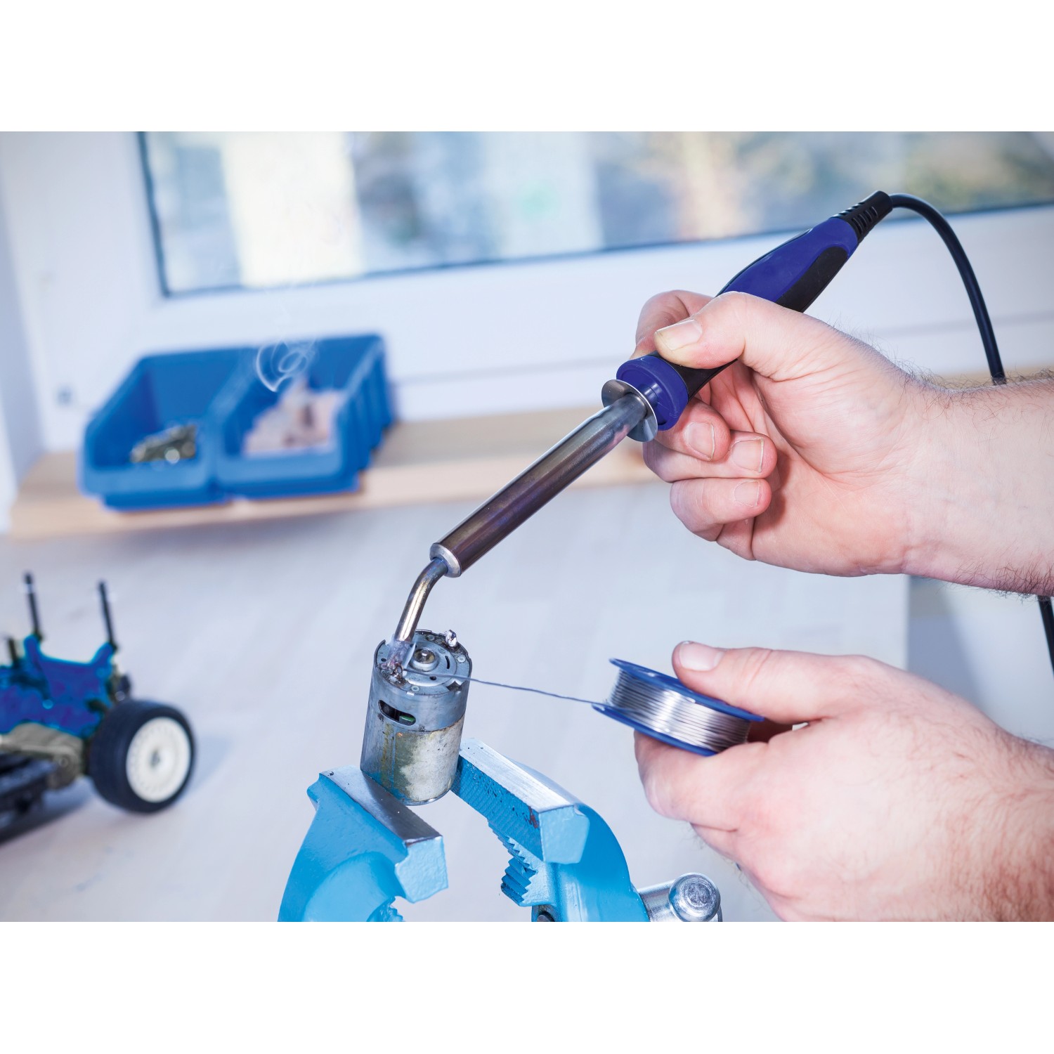 A LUX-TOOLS forrasztópáka optimálisan alkalmas általános műhelyi munkákhoz, például kábelforrasztáshoz, és vésőformájú professzionális forrasztóheggyel van felszerelve. Teljesítménye 100 W, és elérheti az 550 °C-os csúcshőmérsékletet. Az alacsony, kb. 2,25 perces felfűtési idő lehetővé teszi, hogy a forrasztópáka néhány percen belül használatra kész legyen.