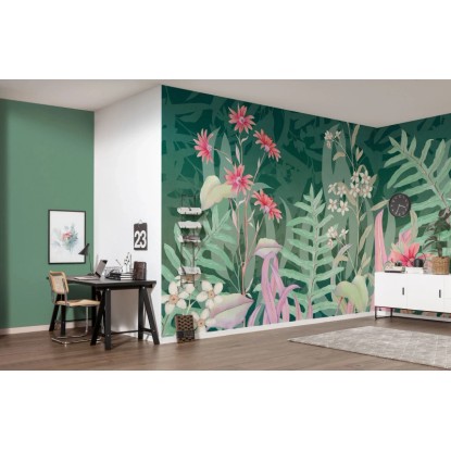Komar fátyoltapéta The Flower Duet 400 cm x 250 cm zöld