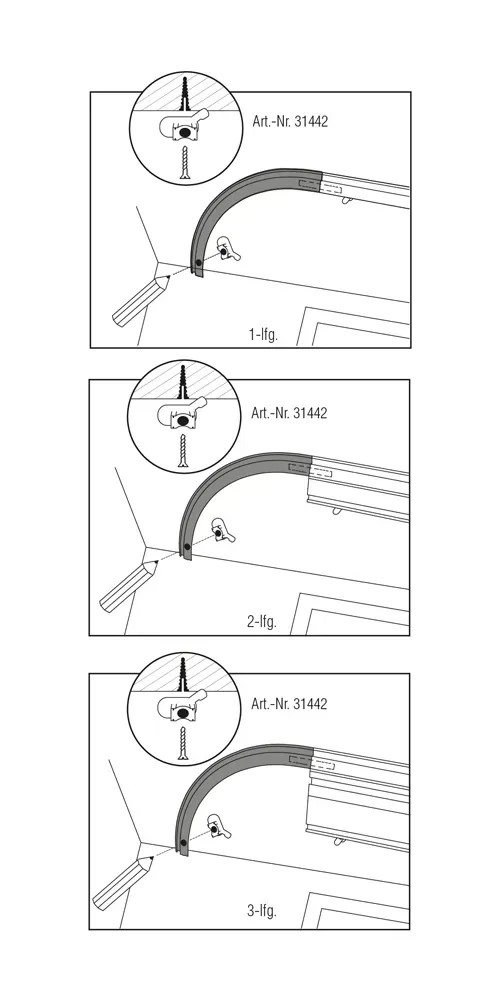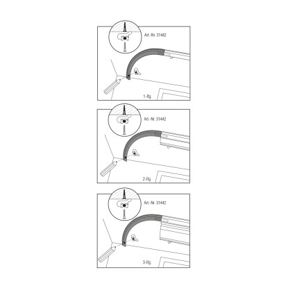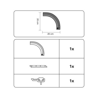 Az alumíniumból készült praktikus körív használatával a függönysínek bármilyen formájú szobában használhatók. Az ív 90°-os szöggel rendelkezik, és az 1 pályás Gardinia alumínium függönysín hosszabbításához használható. Fehér és alumínium színekben kapható.