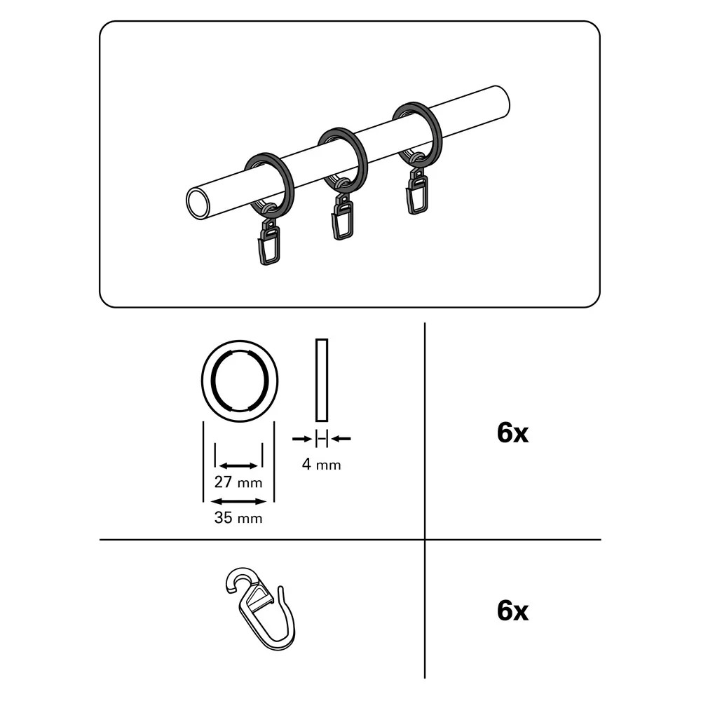 Gardinia Kos függönykarikák átmérő 27 mm rozsdamentes acél 6 db-os csomag