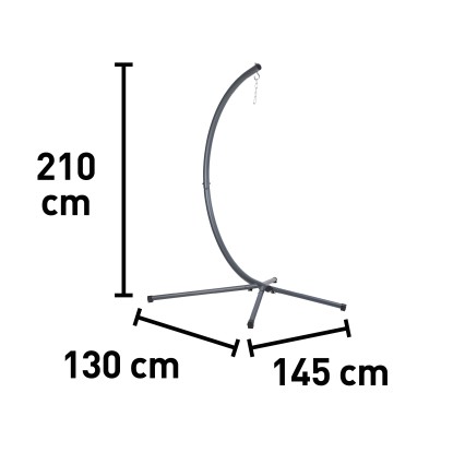 A függőfotelállvány a függőfotel állványaként szolgál. Pihentető pillanatokat biztosít a teraszon és a kertben. Kialakítása egyszerű, melyet az antracit színösszeállítás határoz meg. Az állvány méretei 210 cm x 130 cm x 145 cm.