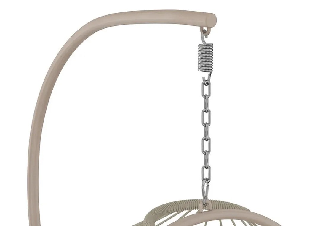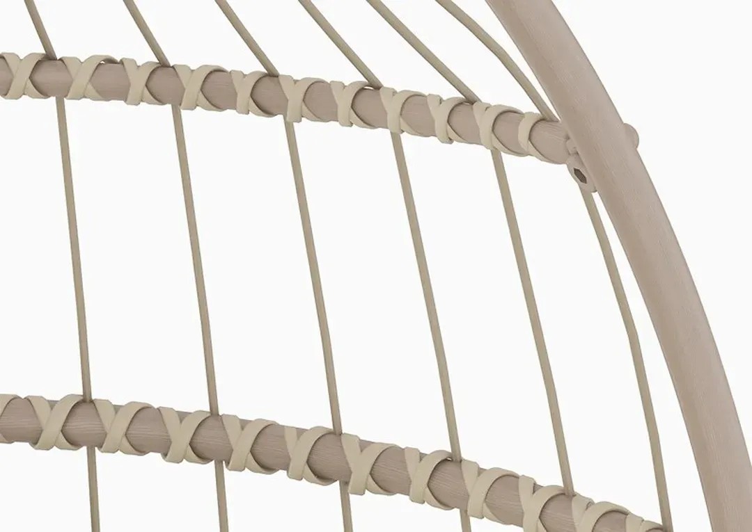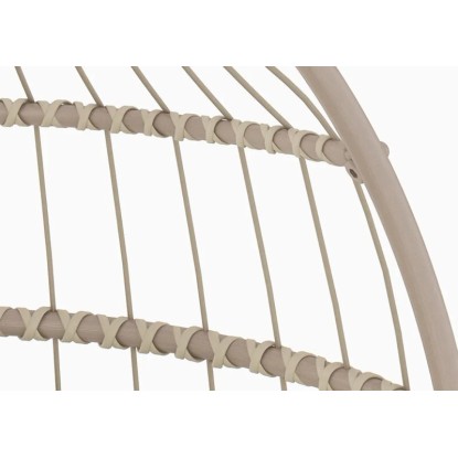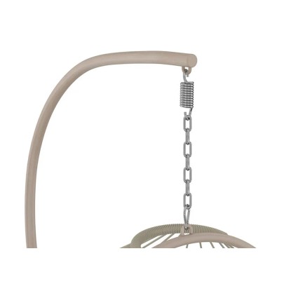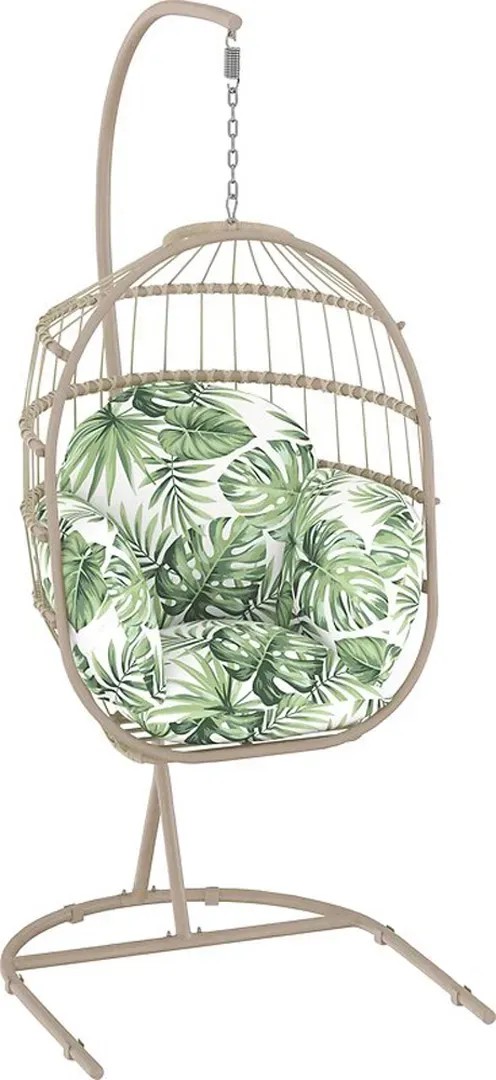 A függőhinta stabil acélszerkezetből készült és zöld festést kapott. Időjárásálló, hosszú élettartammal. A konstrukció robusztus poliészterszövéssel rendelkezik, amely szintén zöld és jó párnázottságot biztosít. A kivehető ülő- és hátpárnák a vastag párnázottságnak köszönhetően magas komfortérzetet biztosítanak ülés közben. A tartós mintás huzatok anyaga 100% poliészter. A puha töltőanyag szintén poliészter.