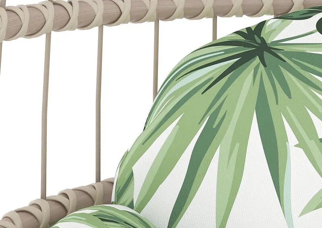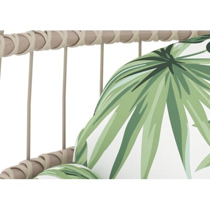 A dekoratív Palmwoods függőfotel pihenésre csábít, legyen szó akár kerti, erkélyen vagy teraszon történő használatról. Csuklós szerkezetű, így használat közben is elforgatható. A zárt háttámla kényelmes ülést biztosít. Időtlen, modern dizájnjának és zöld színének köszönhetően a pihenőfotel sokféle berendezéshez illeszkedik. A párna harmonikusan illeszkedik a csodás mintához.