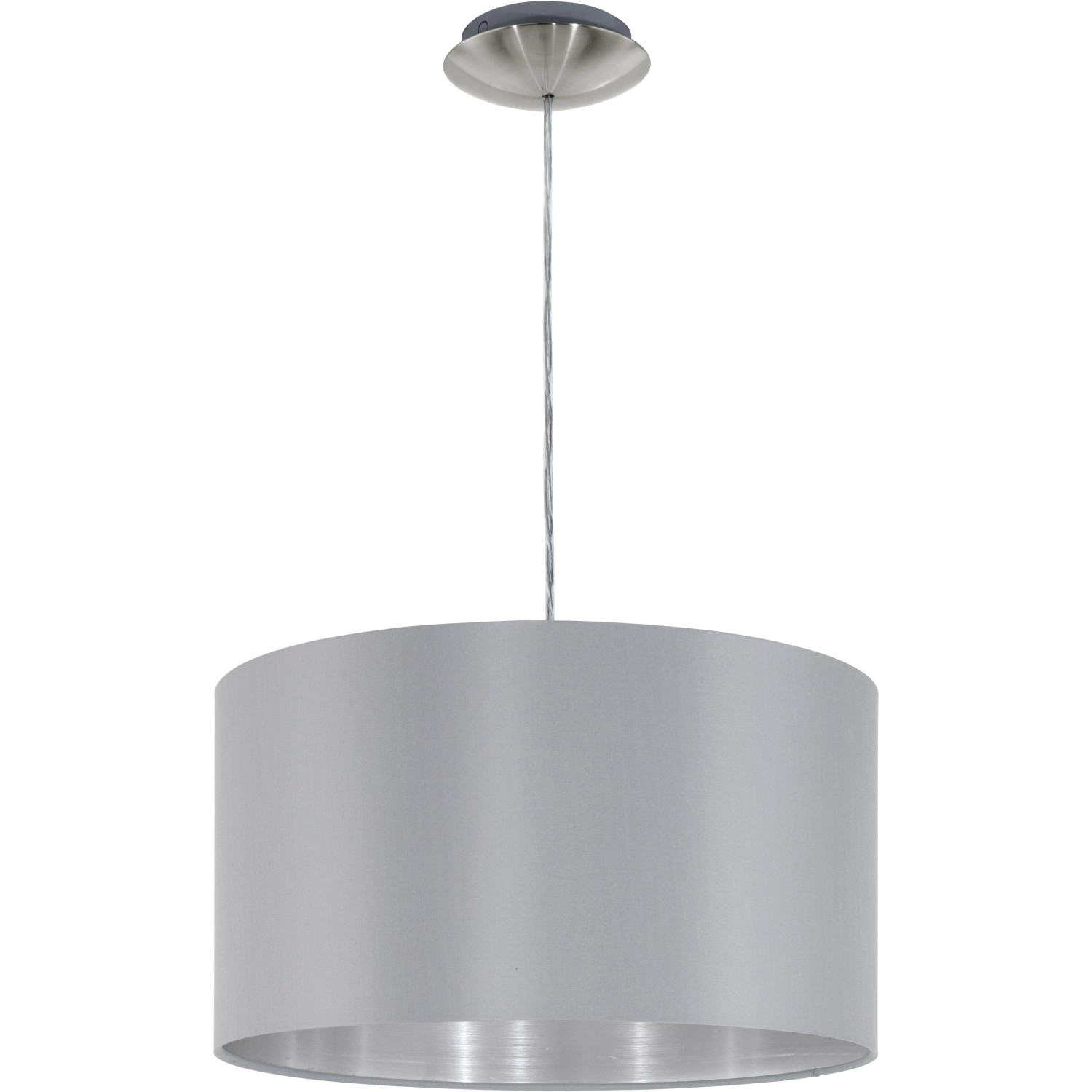 A Maserlo sorozatba tartozó szövet függőlámpa nikkel matt acélból, valamint szürke és ezüst textilből készült kialakításával nyűgöz le. Ezzel a lámpával Ön is modern és szép megjelenést hozhat létre. A kiváló minőségű megmunkálásnak köszönhetően hosszú ideig élvezheti a lámpát. Az E27-es foglalatba bármilyen, ilyen foglalattal rendelkező, legfeljebb 60 wattos izzót használhat.