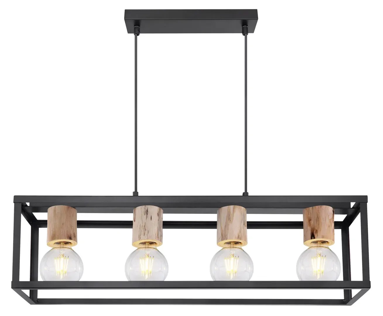 Függeszték matt fekete váz, natúr fa foglalatok. Méret: ( H x SZ x M ) 750 mm x 200 mm x 1200 mm, exkl. 4 x E27, 60 W, 230 V.