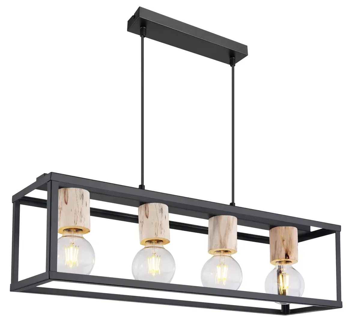 Globo Hagar függeszték lámpa 4-es 120 cm matt fekete - natúr fa