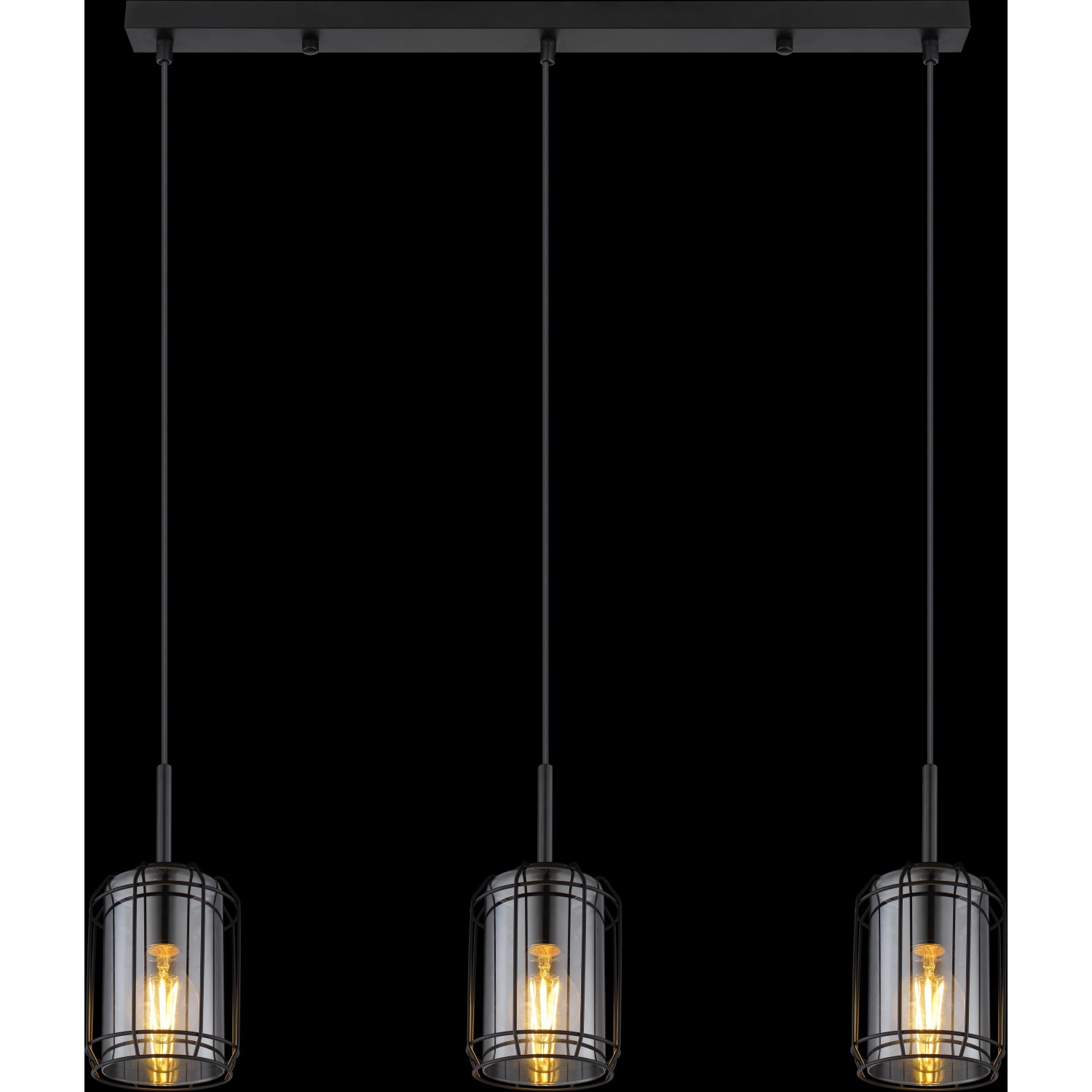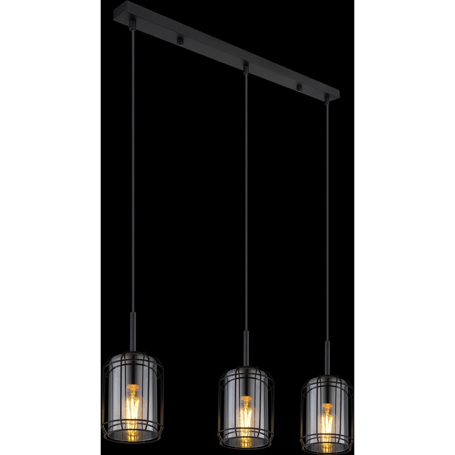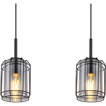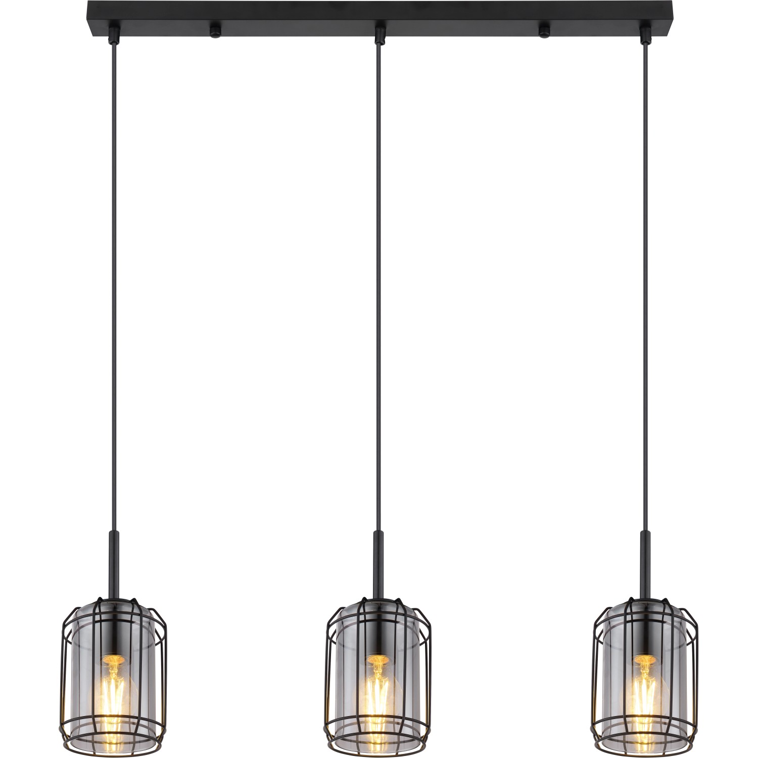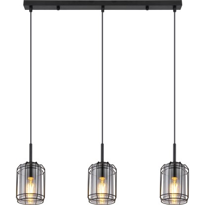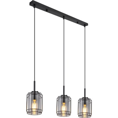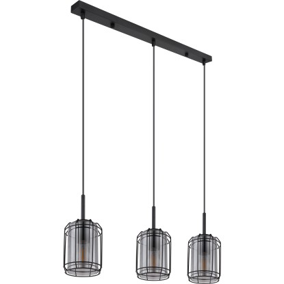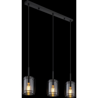 Globo Kammi függőlámpa 3 izzós fekete matt füstszínű 770 mm x 130 mm x 1200 mm