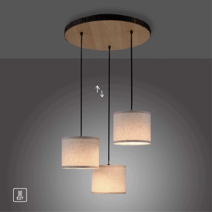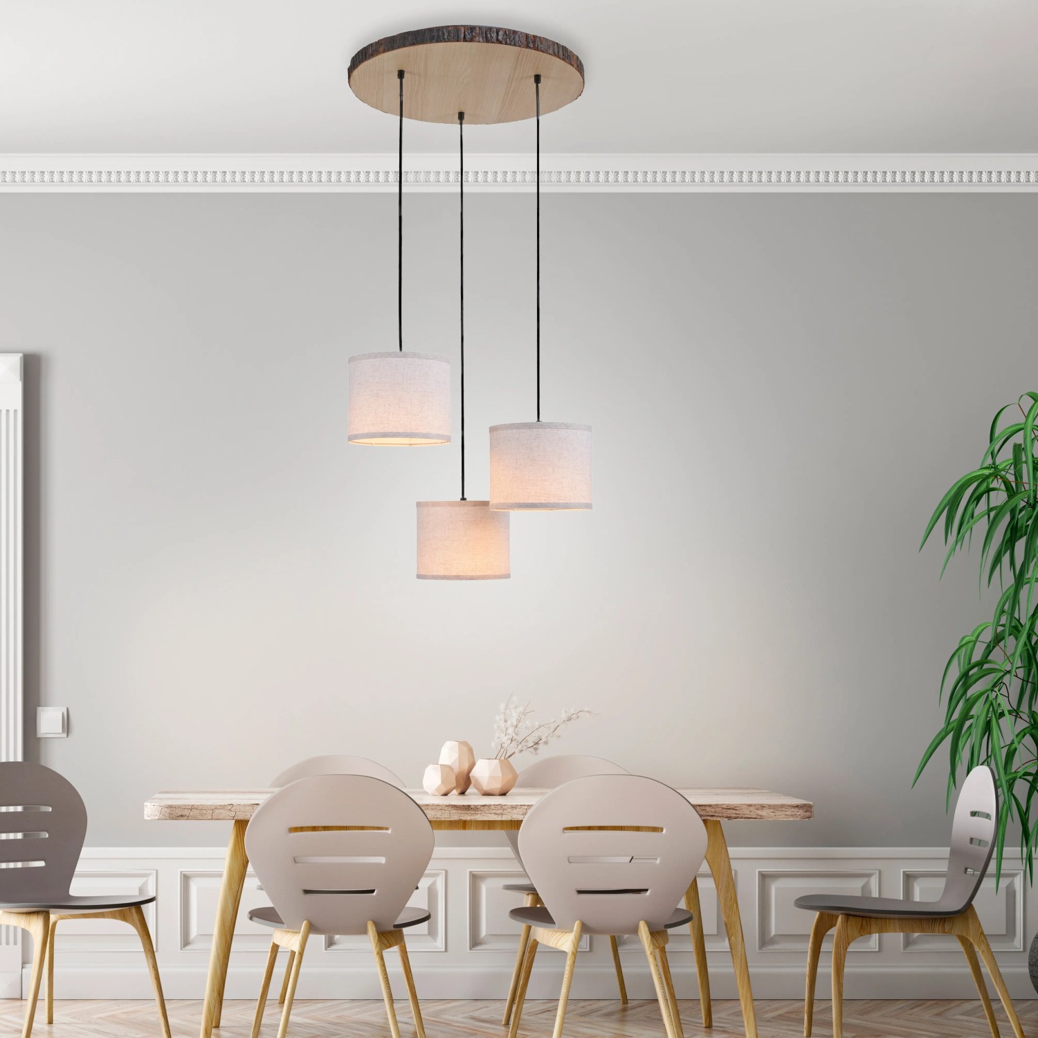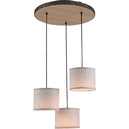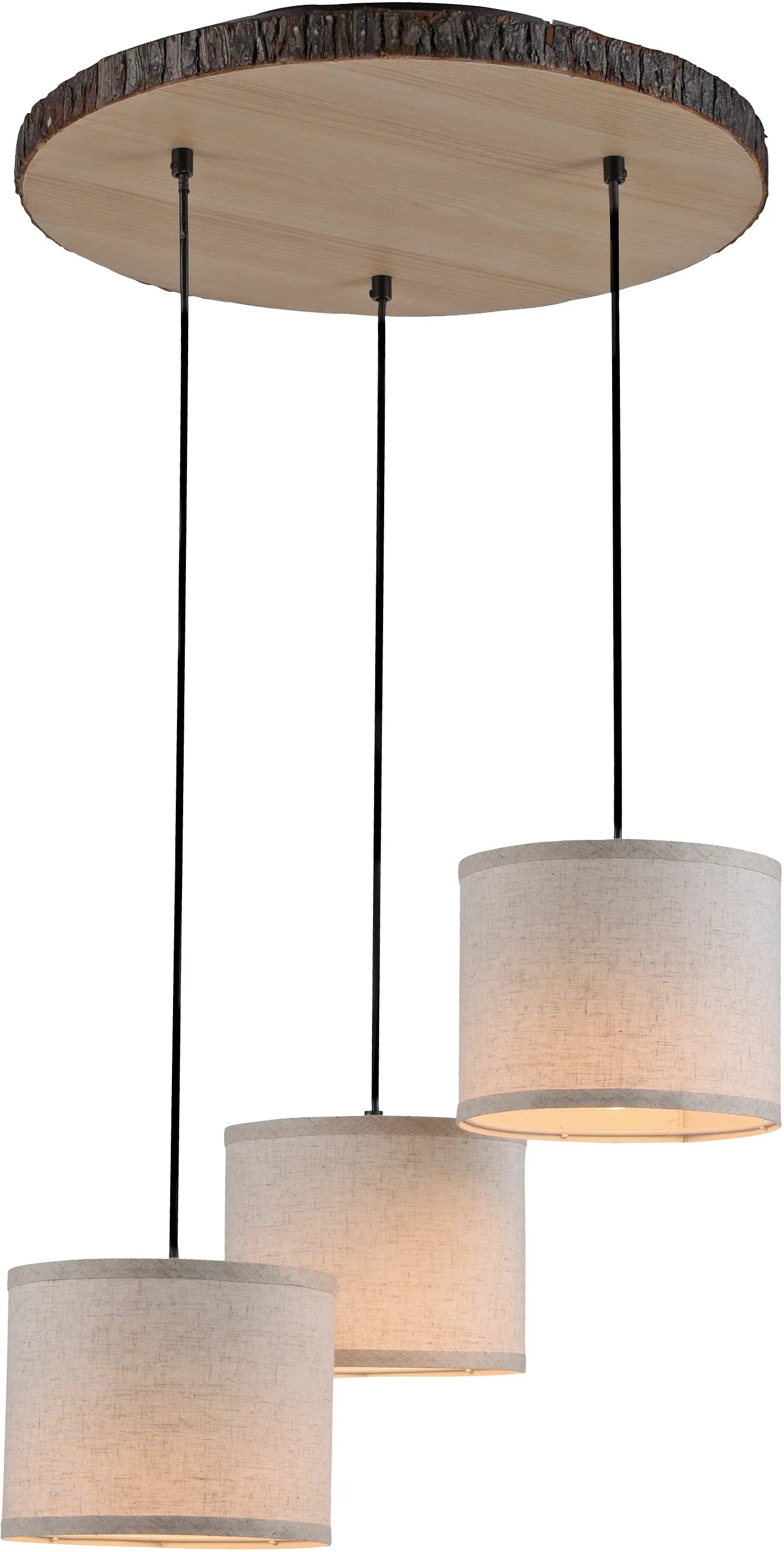 A Bark sorozat rusztikus mennyezeti lámpája nemcsak fényt bocsát ki, hanem kikapcsolt állapotban is dekoratív látványosság. A bézs színű lámpaernyők ügyesen illeszkednek számos berendezési stílushoz. A lámpa nem tartalmaz izzót, és három darab, egyenként 40 wattos E27-es izzóval szerelhető fel. Így nagyon rugalmas a fényereje és a fény színének megválasztása. A három különálló függőlámpa magassága a szerelés előtt tetszés szerint állítható be. Helyezze ezt a dekoratív szemet gyönyörködtető látványt az egyik lakótérbe.
