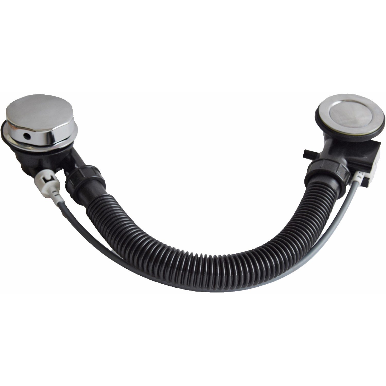 Az univerzális le- és túlfolyó garnitúra minden hagyományos fürdőkádhoz használható. Műanyagból készült, és a látható részek krómozottak.