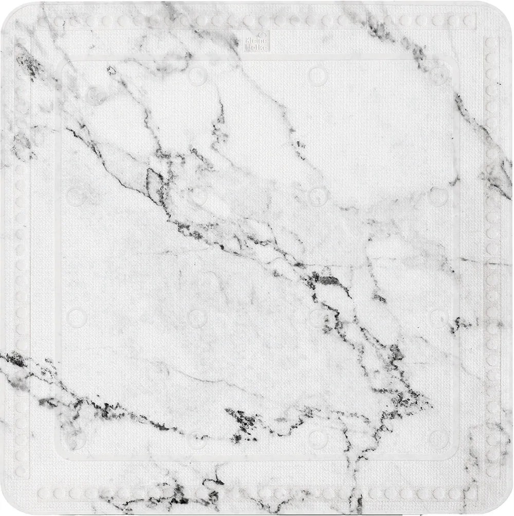 Az 55 cm x 55 cm méretű, antracit színű Kleine Wolke Marble zuhanyszőnyeg a kényelmi- és a biztonsági követelmények megfelelő arányát kínálja. Az elegáns márvány kialakítás nemcsak tetszetős, hanem megbízhatóan tapad a kád aljára is a számos hátoldali tapadókorongnak köszönhetően. A domború kialakítású felülete is csúszásmentes, így biztonságosan állhat rajta. A magas minőségű kidolgozásnak köszönhetően nagy igénybevétel esetén is sokáig használható.