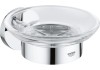 A tartóval felszerelt szappantartó az Essentials sorozat része. Üvegből készült szappantartóval, valamint fémből készült tartóból áll, és GROHE StarLight krómozott felülettel rendelkezik. Ráadásul a tartó rejtett rögzítéssel rendelkezik.