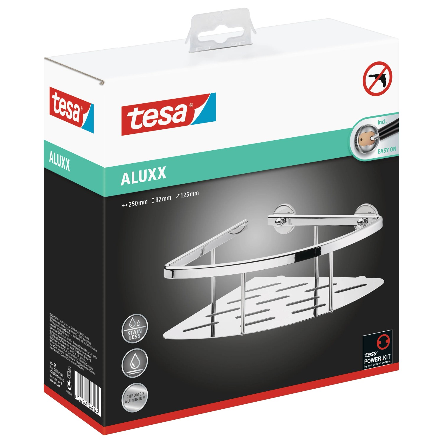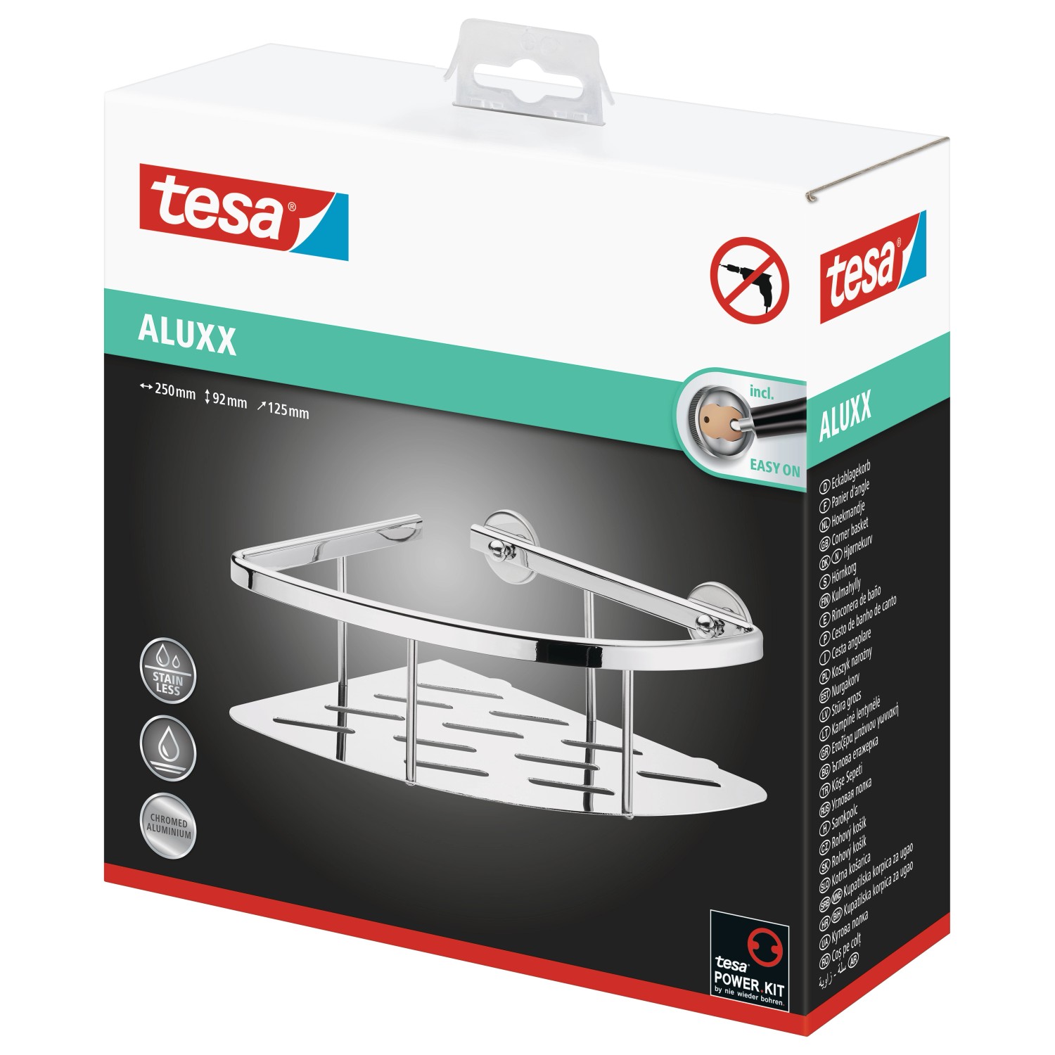 tesa ALUXX sarok zuhanypolc magasfényű krómozott alumínium ragasztós rögzítés