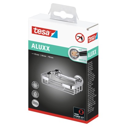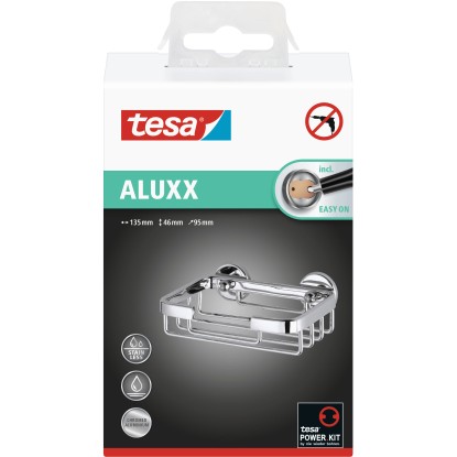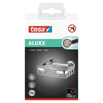 A tesa ALUXX szappantartó kosár kicsi, de megbízható kiegészítő a zuhanyzóban, amelyben a szappant könnyen elérhető helyen tarthatja. 12 órás száradást igénylő ragasztós megoldással, fúrás nélkül lehet rögzíteni, így a fal és a csempe nem sérül. A kosár szükség szerint bárhová feltehető. Ugyanakkor bármikor gyorsan, nyom nélkül le is szedhető. Egy új BK43-2 adapterrel nagyon könnyen újra felhasználható egy másik helyen. Az alumínium test magasfényű felületével és elbűvölő, egyszerű formájával a kosaras szappantartó remekül illik bármely fürdőszobába.