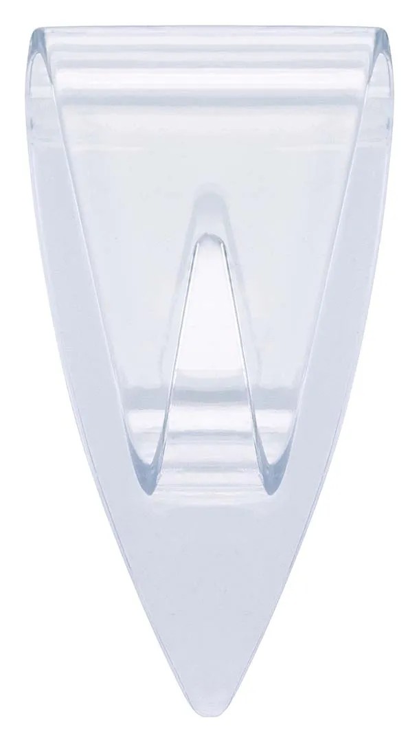 3. Vegye le a védőfóliát, és helyezze rá a ragasztócsíkra az öntapadós akasztót, közvetlenül az átlátszó fül vonala fölé. Ezt is nyomja rá öt másodpercig.