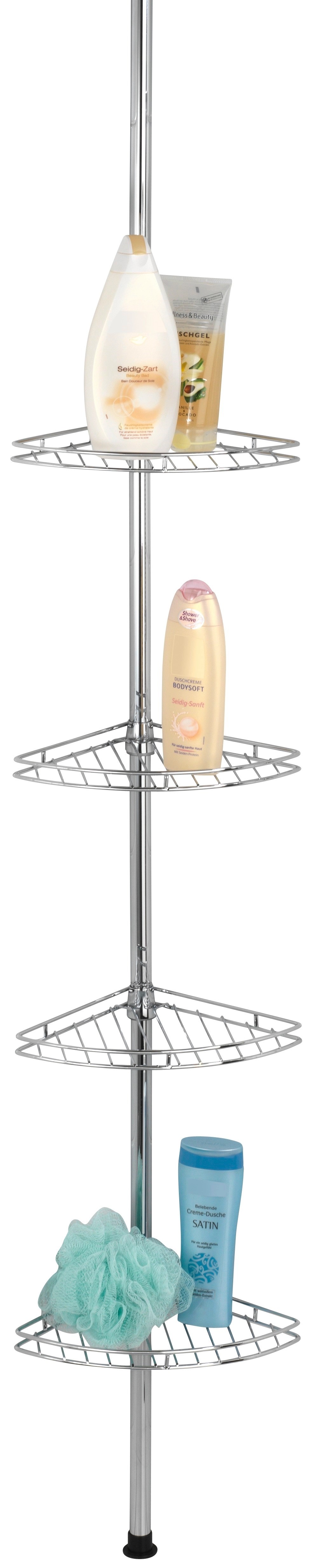 A kiváló minőségű, rozsdamentes acélból készült Prea teleszkópos zuhanysarok univerzálisan használható zuhanyfülkékben, fürdőkádakban és szobasarkokban. A praktikus, 4 huzalpolcos sarokpolc számos tárolási lehetőséget kínál a sampon, tusfürdő, szappan, szivacs és más fürdőtartozékok számára. Gyorsan és könnyen szerelhető - fúrás nélkül, mivel a teleszkópos polc egyszerűen a padló és mennyezet közé szorítható. Magassága változtatható, hiszen a teleszkópos rúd 56 cm és 275 cm között beállítható.