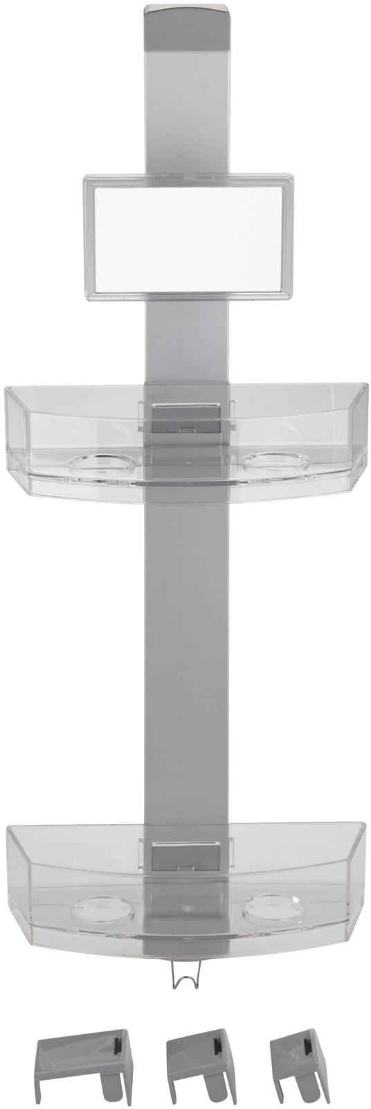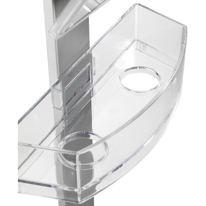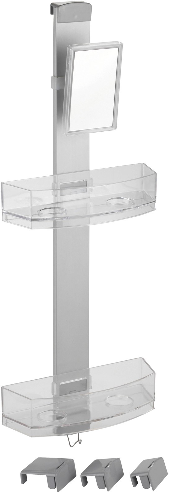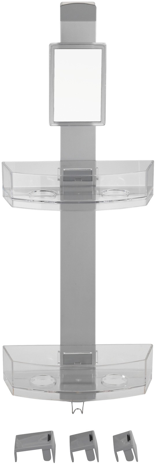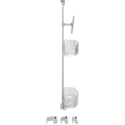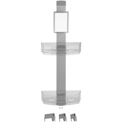 A kiváló minőségű zuhanypolc mind beakasztásra, mind falra szerelésre alkalmas. Ezenkívül egy praktikus páramentes tükörrel is rendelkezik. A zuhanypolc egy rozsdamentes acél rúdból, két műanyag polcból és egy rozsdamentes acél akasztóból áll. Modern formatervezés és nagy fokú funkcionalitás jellemzi, és a zuhanyfülkében, az ajtón vagy a teljes fürdőszobában bárhol használható.
