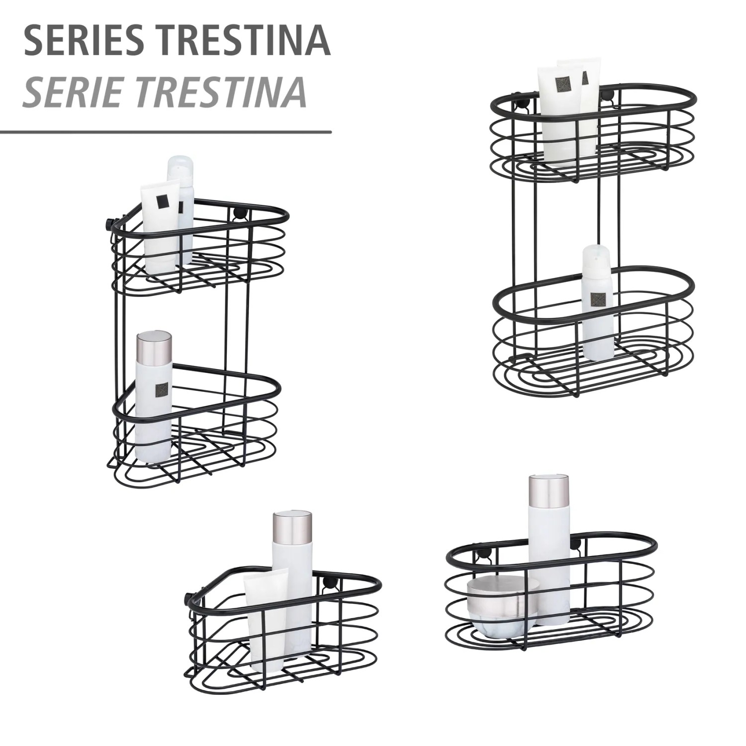 Megjelenésében és praktikusságát tekintve a kiváló minőségű Trestina sarokpolc tökéletesen alkalmas fürdőszobában való használatra. A palackokban vagy tubusokban tárolt kozmetikumok rendezhetők és elegánsan tárolhatók. A zuhanyzóban a samponok és tusfürdők megfelelő helyet találnak a kívánt magasságban.