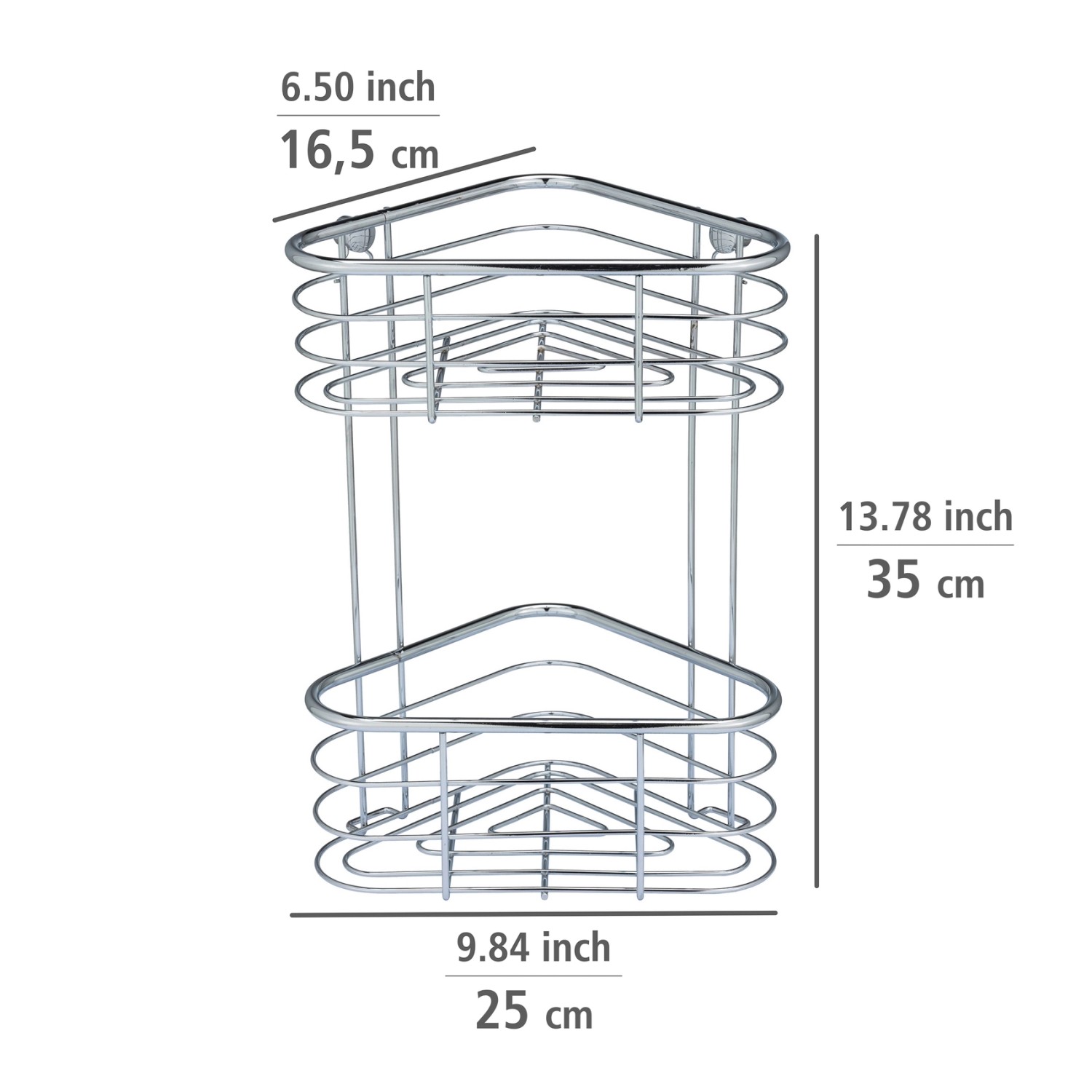 A 2 szintes, rozsdamentes acélból készült WENKO Trestina sarokpolc fényes helyet kínál a fürdőszobai eszközöknek és kozmetikumoknak. Az extra mély kosarak biztosítják például a samponos vagy tusfürdős flakonok biztonságos és stabil állását. A polc kompatibilis egyedi UV-Loc® ragasztórendszerünkkel.