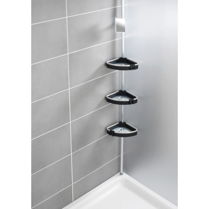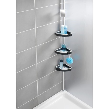 A Wenko Wave teleszkópos zuhanypolc a modern formaterv, kiváló minőség és elsőrangú funkcionalitás kombinációjával győz meg. A polc három műanyag polcával és integrált akasztójával sok helyet kínál zuhanyozási kellékeinek, és segít abban, hogy a sampon, szappan, szivacsok és más fürdőszobai tartozékok mindig kéznél legyenek.