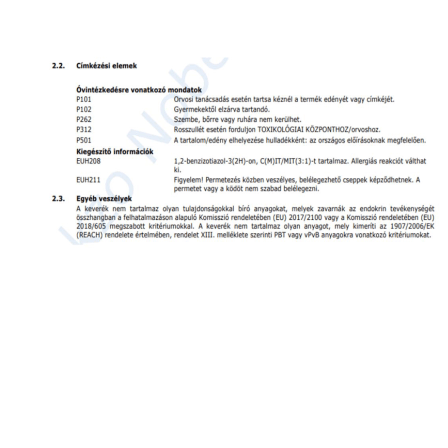 | Alk. gyermekjátékhoz (DIN EN 71-3 bevizsg.): | Gyermekjátékhoz nem alkalmas |