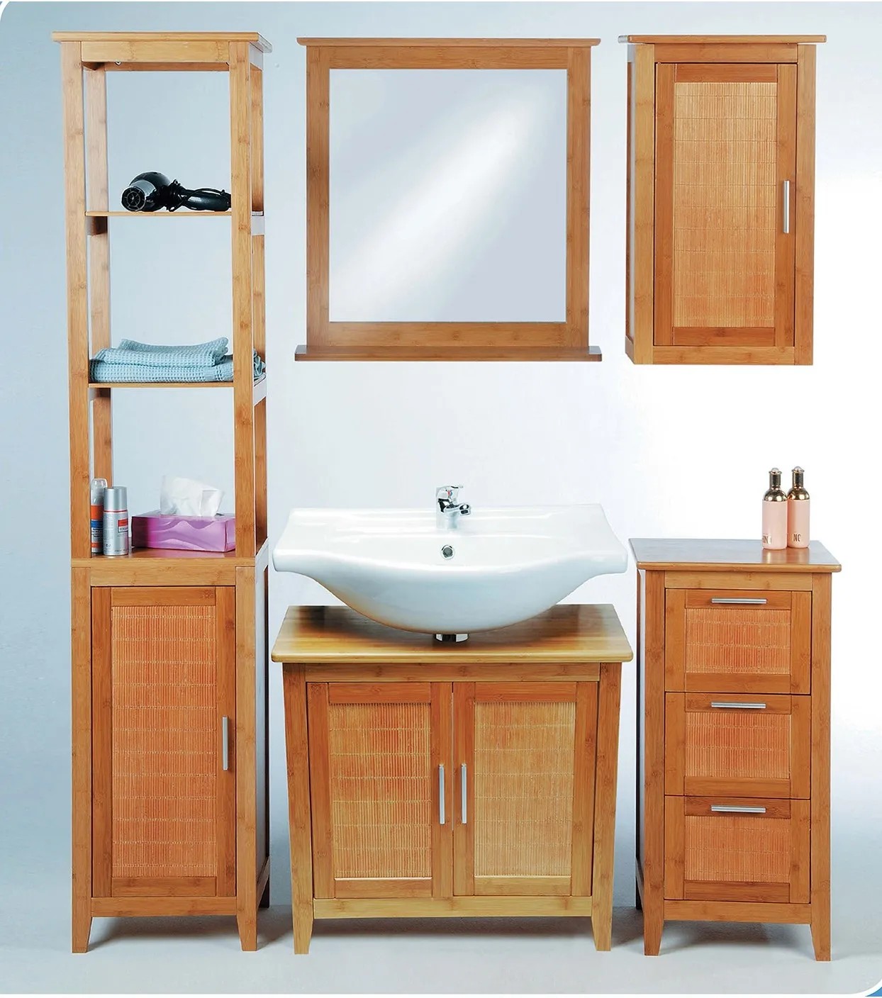 A BAMBUS sorozat Eisl fürdőszobai magas szekrénye tökéletes dizájnjával és kiváló minőségű kidolgozásával nyűgöz le. Fa színének köszönhetően a fürdőszobai szekrény jól illeszkedik a meglévő fürdőszobai berendezésekhez.