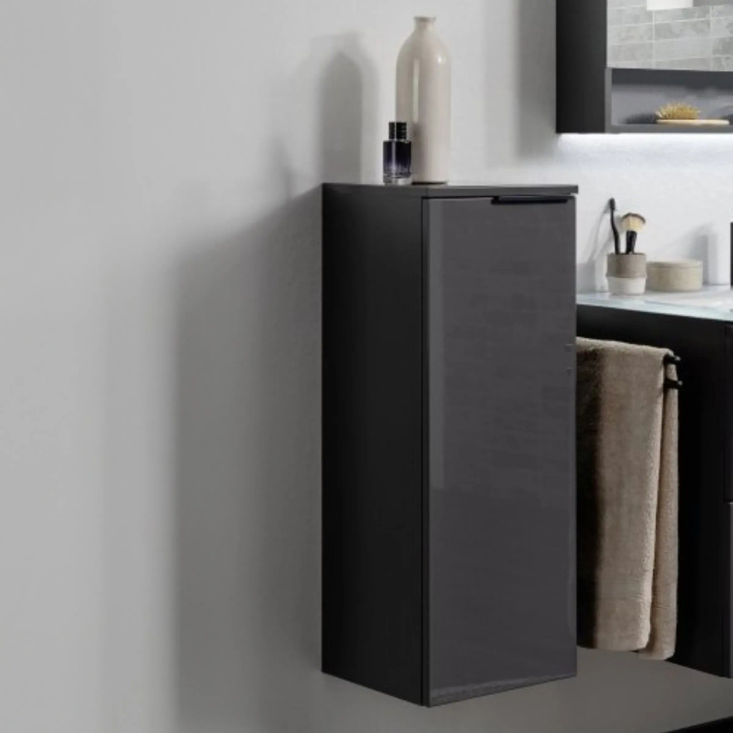 A Fackelmann Luna midi szekrény a modern kialakítást egyesíti a funkcionális felszereltséggel. A Luna sorozatból származó, kiváló minőségű, Németországban gyártott szekrény nemcsak magasfényű antracitszürke előlapjával, hanem praktikus felszereltségével is kiemelkedő látvány.