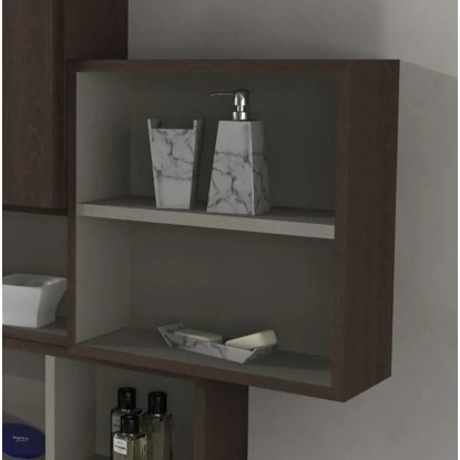 Az Avril fali szekrény minden lakberendezési koncepcióba beilleszthető. A nyitott magas szekrény elfordítható, és a fa rekesz mögötti rögzítőrendszerrel rendelkezik. Kiváló minőségű MDF-ből készült, és PVC-vel fóliázták. Ennek köszönhetően a fali szekrény vízlepergető és könnyen ápolható. A fali szekrény belső oldala szürkére textilhatásúra laminált. 1 fix fa rekesszel rendelkezik. A magas szekrény előszerelve kerül kiszállításra, és a falra kell rögzíteni.