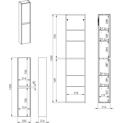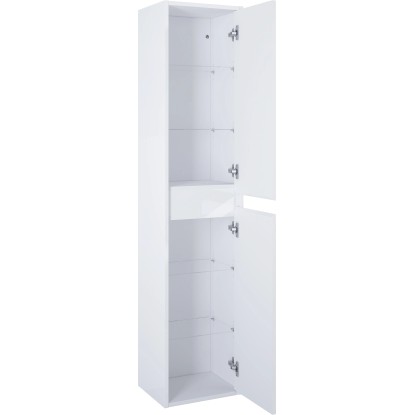 A karcsú fürdőszobai szekrény 35 cm széles, és 155 cm-es magasságának köszönhetően elegendő tárolóhelyet biztosít minden fürdőszobai- és egészségápolási termék számára. A szekrény Softclose funkcióval is rendelkezik, így megakadályozza a hirtelen záródást.Könnyen tisztítható felületek