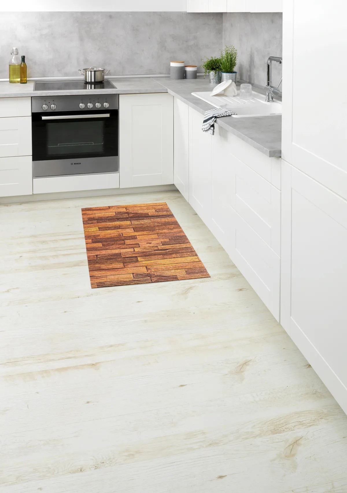 A Wenko praktikus, puha habszivacsból készült szőnyegével egy igazi univerzális kiegészítő érkezik otthonába. Az ötletes, könnyen ápolható műanyagból készült szőnyeg igazi multifunkciós megoldás, és felkapott famintával rendelkezik. Kiválóan használható a fürdőszobában a fürdőkád vagy a zuhanyzó előtt. Csúszásgátló hatású, és minden olyan helyen gondoskodik a szükséges biztonságról, ahol nedves lehet a padló. Konyhai szőnyegként is kiválóan mutat. Kültéren, az erkélyen vagy a teraszon elhelyezve a szőnyeg dekoratív és kiváló ellenálló képességgel rendelkező látványosság lesz. Fitneszhelyiségekben vagy szaunák környezetében is tökéletes padlóburkolatnak bizonyul. A puha hab nagyon kényelmes érzetet kelt a lábak számára. Emellett a szőnyeg nagyon higiénikus, légáteresztő, és padlófűtés esetén is használható. A rugalmasan kezelhető szőnyeg ollóval kényelmesen a kívánt méretre vágható. A kényelmes szőnyeg szennytaszító tulajdonsággal rendelkezik, és szükség esetén legfeljebb 40 Celsius-fokos kímélő programon mosható mosógépben. Mérete (Sz x Mé): 50 cm x 80 cm