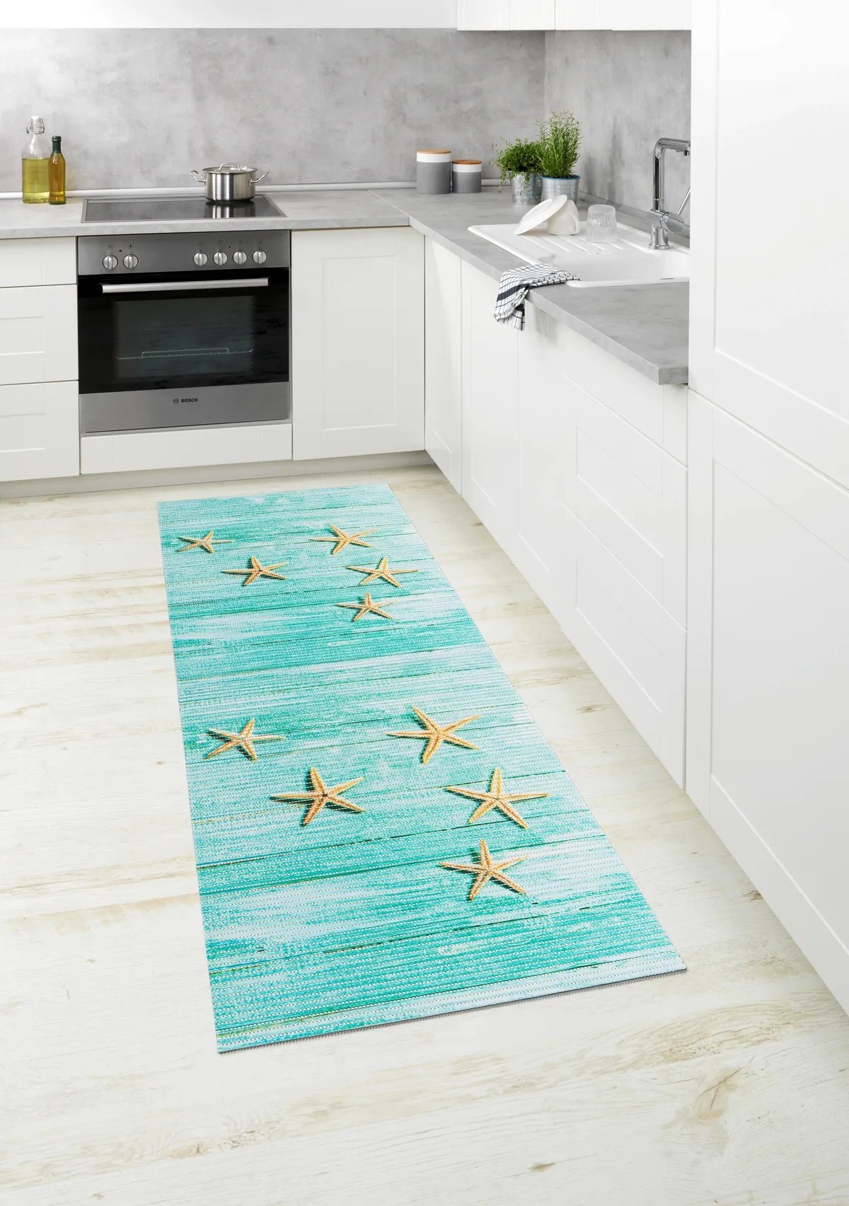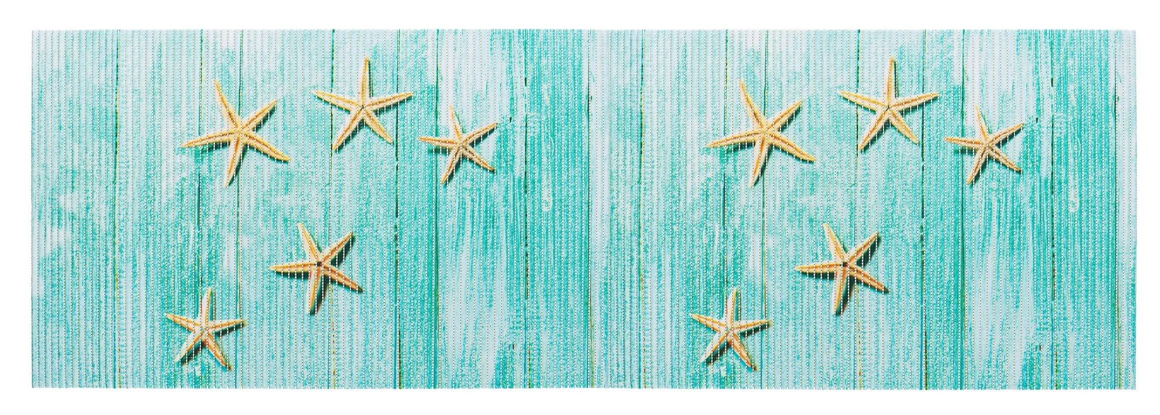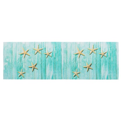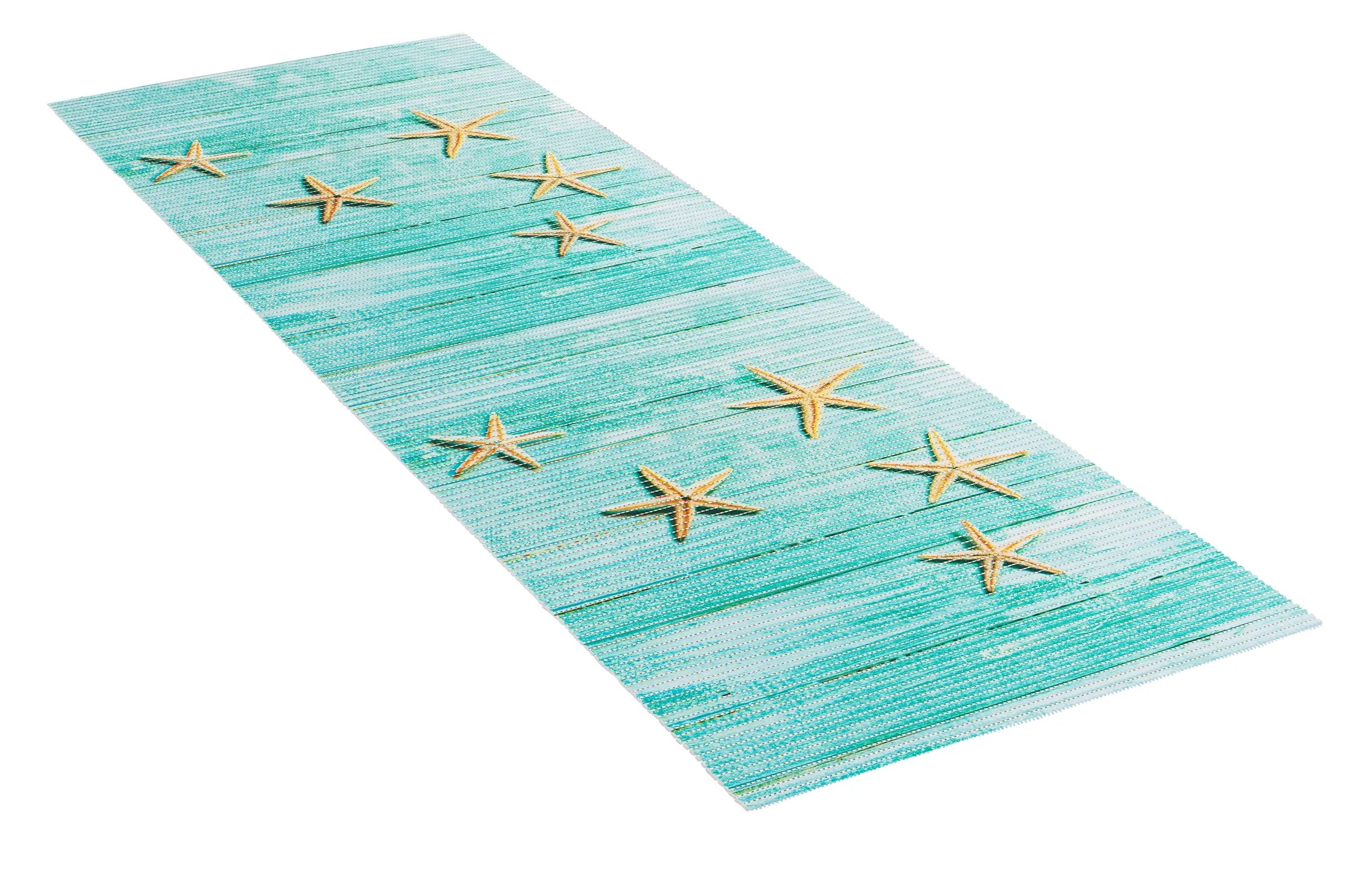 A Wenko praktikus, puha habszivacsból készült szőnyegével egy igazi univerzális kiegészítő érkezik otthonába. Az ötletes, könnyen ápolható műanyagból készült szőnyeg igazi multifunkciós megoldás, és aranyos tengeri csillagos mintával rendelkezik. Kiválóan használható a fürdőszobában a fürdőkád vagy a zuhanyzó előtt. Csúszásgátló hatású, és minden olyan helyen gondoskodik a szükséges biztonságról, ahol nedves lehet a padló. Konyhai szőnyegként is kiválóan mutat. Kültéren, az erkélyen vagy a teraszon elhelyezve a szőnyeg dekoratív és kiváló ellenálló képességgel rendelkező látványosság lesz. Fitneszhelyiségekben vagy szaunák környezetében is tökéletes padlóburkolatnak bizonyul. A puha hab nagyon kényelmes érzetet kelt a lábak számára. Emellett a szőnyeg nagyon higiénikus, légáteresztő, és padlófűtés esetén is használható. A rugalmasan kezelhető szőnyeg ollóval kényelmesen a kívánt méretre vágható. A kényelmes szőnyeg szennytaszító tulajdonsággal rendelkezik, és szükség esetén legfeljebb 40 Celsius-fokos kímélő programon mosható mosógépben. Mérete (Sz x Mé): 65 cm x 200 cm