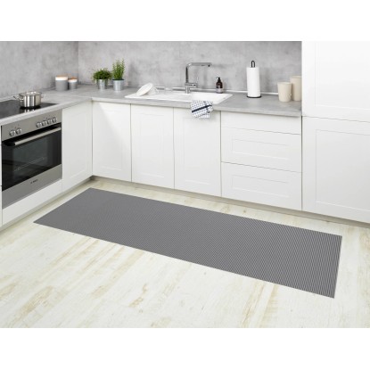 A Wenko praktikus, puha habszivacsból készült szőnyegével egy igazi univerzális kiegészítő érkezik otthonába. Az ötletes, könnyen ápolható műanyagból készült szőnyeg igazi multifunkciós megoldás, és mutatós, visszafogott szürke színben készült. Kiválóan használható a fürdőszobában a fürdőkád vagy a zuhanyzó előtt. Csúszásgátló hatású, és minden olyan helyen gondoskodik a szükséges biztonságról, ahol nedves lehet a padló. Konyhai szőnyegként is kiválóan mutat. Kültéren, az erkélyen vagy a teraszon elhelyezve a szőnyeg dekoratív és kiváló ellenálló képességgel rendelkező látványosság lesz. Fitneszhelyiségekben vagy szaunák környezetében is tökéletes padlóburkolatnak bizonyul. A puha hab nagyon kényelmes érzetet kelt a lábak számára. Emellett a szőnyeg nagyon higiénikus, légáteresztő, és padlófűtés esetén is használható. A rugalmasan kezelhető szőnyeg ollóval kényelmesen a kívánt méretre vágható. A kényelmes szőnyeg szennytaszító tulajdonsággal rendelkezik, és szükség esetén legfeljebb 40 Celsius-fokos kímélő programon mosható mosógépben. Mérete (Sz x Mé): 65 cm x 200 cm