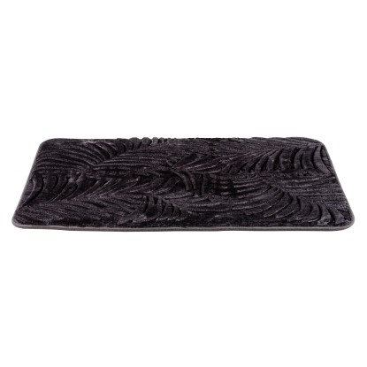 Az antracit alapszín és a fekete pálmalevelek kombinációjával a fürdőszobai szőnyeg a funkciója mellett tökéletes dekoratív hatást is nyújt minden fürdőszobában.