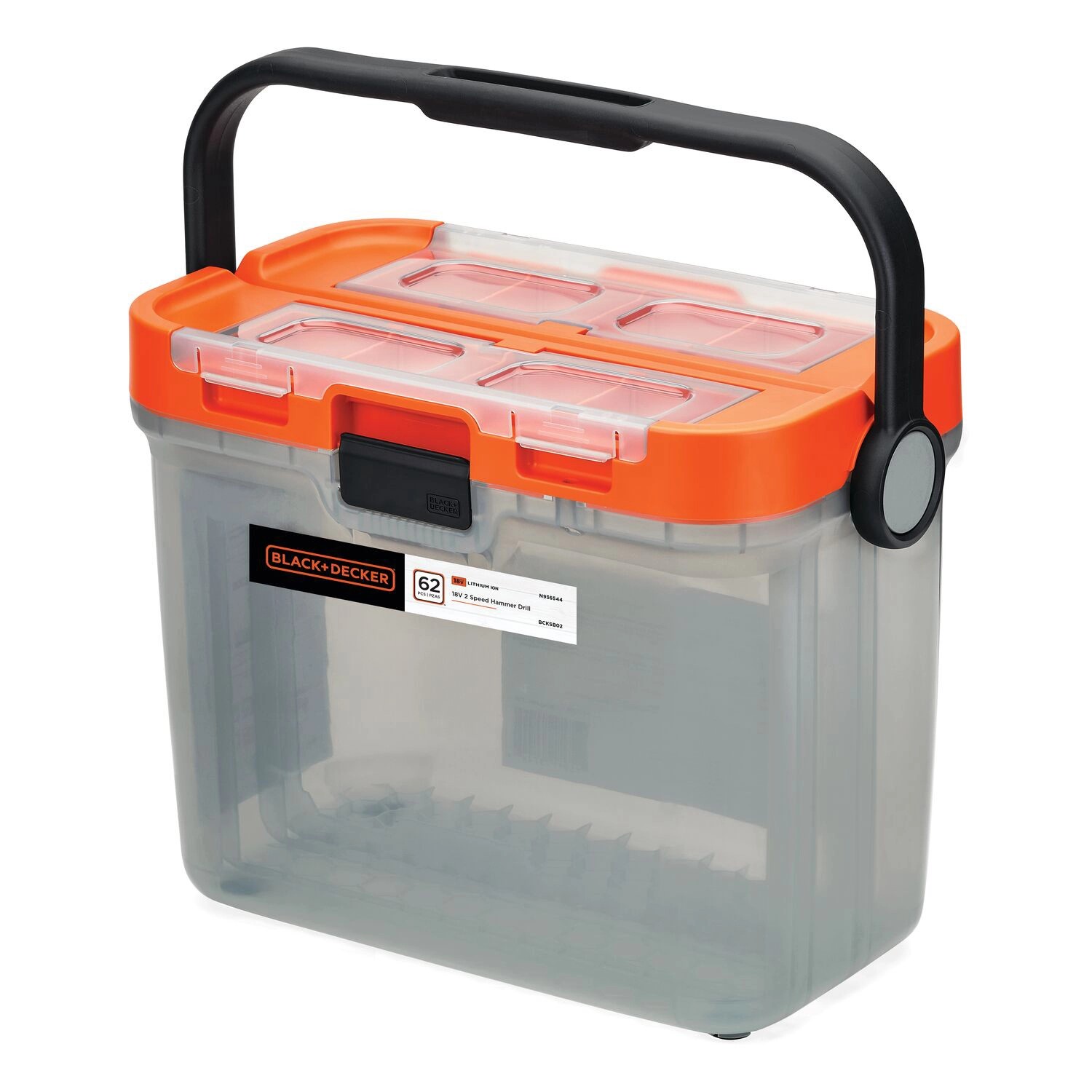 18V ütvefúró-csavarozó kéziszerszámokkal, tartozékokkal, tároló dobozban. A csomag tartalma: 18V akku 1,5Ah ami része az 1 akku minden Black+Decker termékhez, POWER CONNECT név alatt. 2 sebesség a csavarozáshoz és a fúráshoz. 10 +1 nyomatékállítási lehetőség, hogy minden anyagba pontosan tudjon csavarozni. Precíz pisztolykapcsoló a változtatható fordulatszám érdekében. LED lámpa a munkafelület láthatóságáért. Csúszásmentes markolat. Kulcs nélküli 2 kezes tokmány. 1 akkut és egy töltőt tartalmaz. 62 db extra kiegészítővel (kéziszerszám+tartozékok). Tárolódobozban. Üresjárati ütészszám max 21000/perc. Üresjéárati fordulatszám 0-1400/perc. Maximális nyomaték 45Nm.