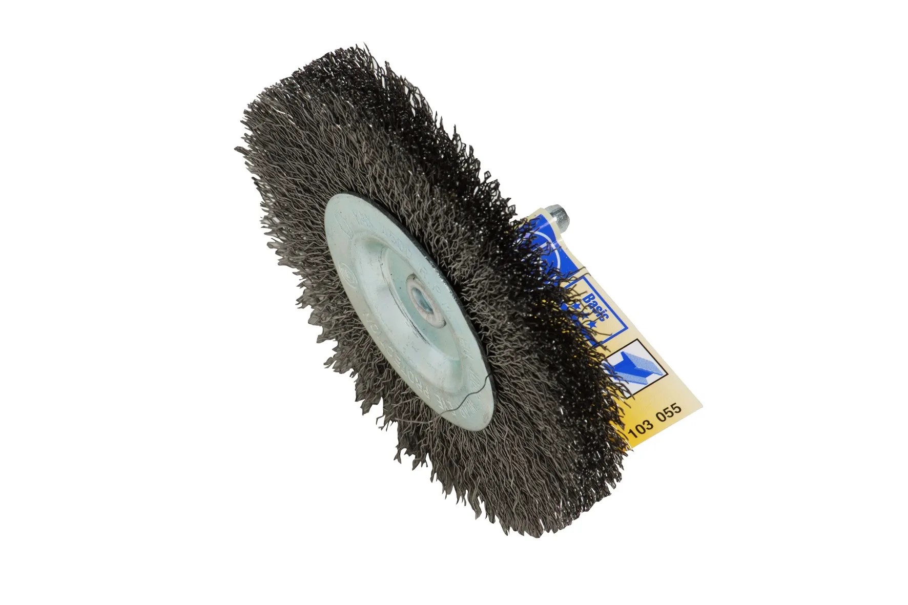 A LUX-TOOLS csavart kivitelű tárcsakefe ideális acél és más fémek rozsdamentesítéséhez, tisztításához, festék eltávolításához. Átmérője 100 mm, a szár mérete pedig 6 mm. A kefe alumínium megmunkálására nem alkalmas.