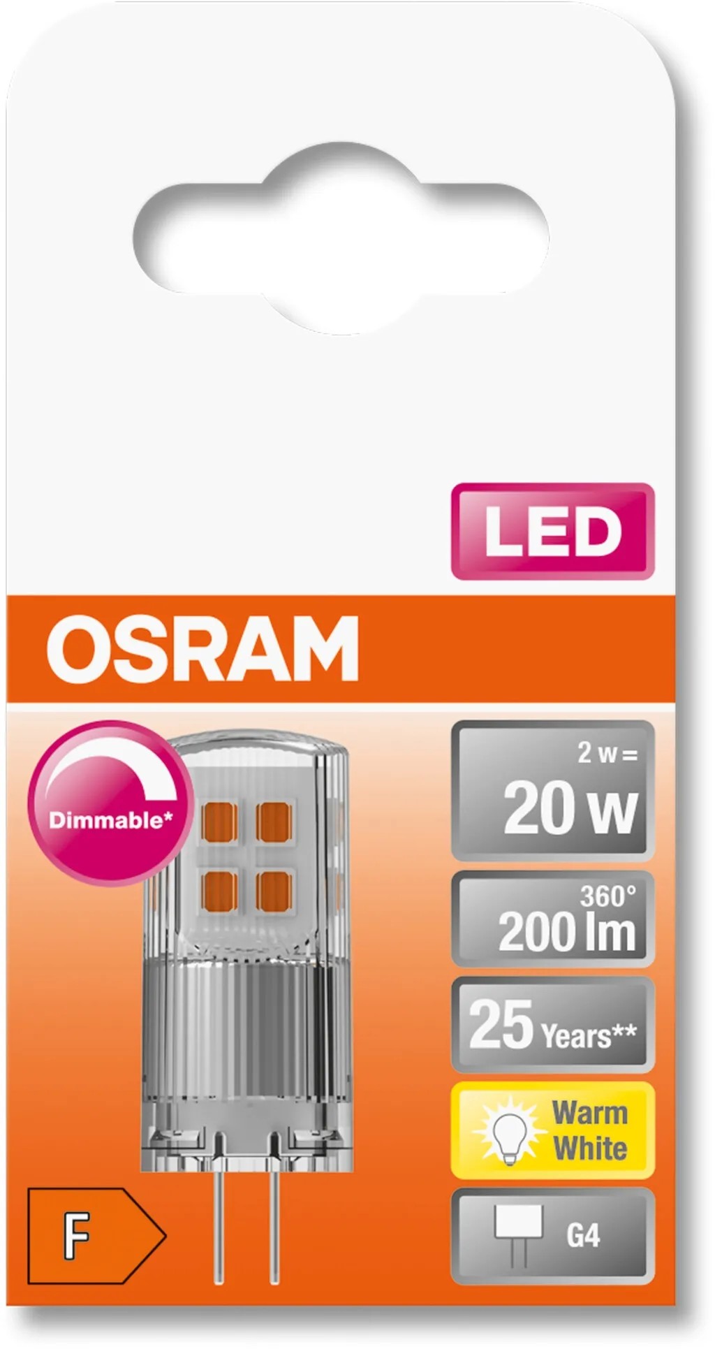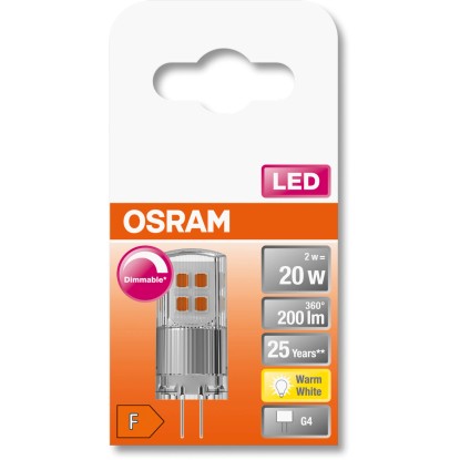 A praktikus, G4-es foglalatú Osram LED-izzó hosszú, akár 25 000 órás élettartammal rendelkezik.