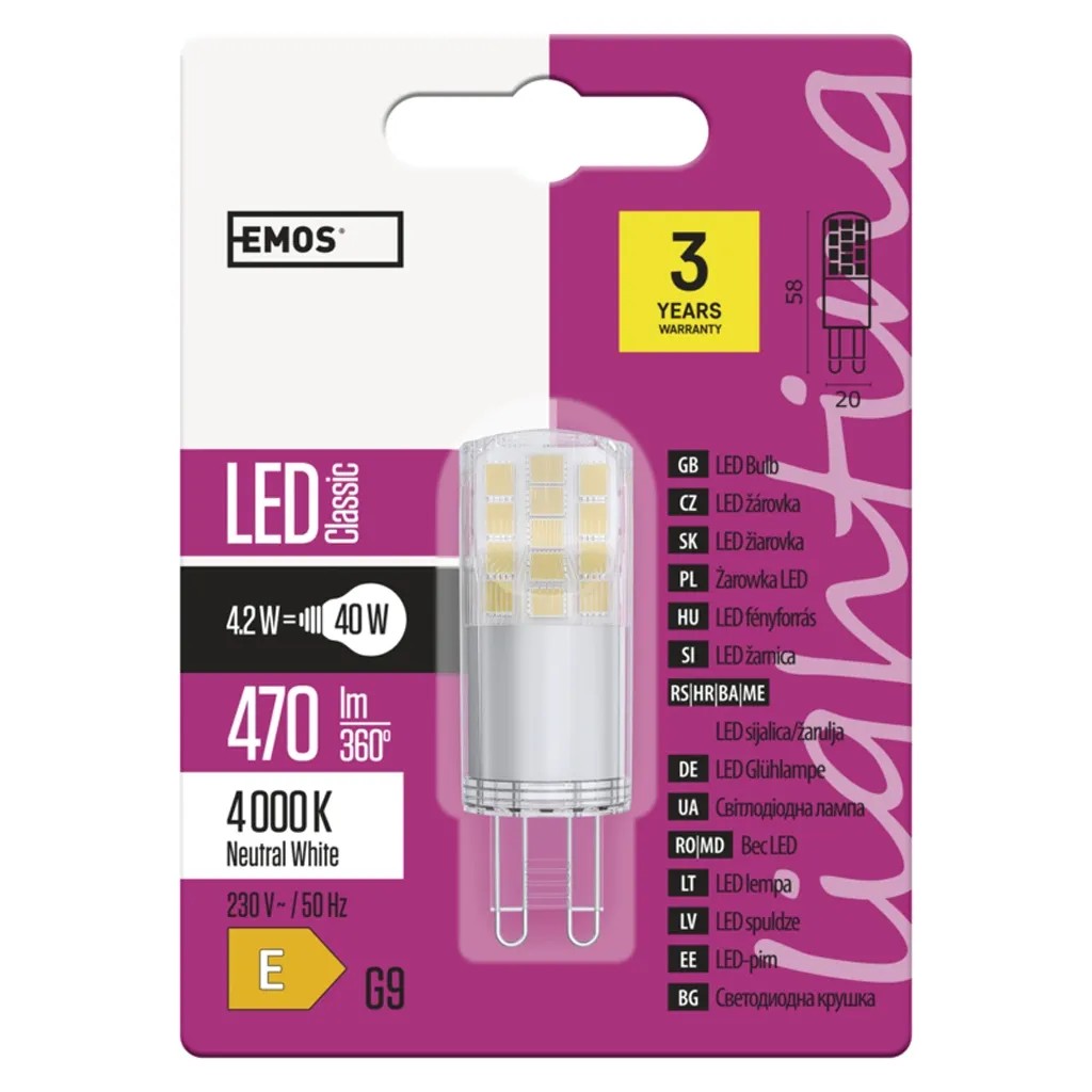 Emos Classic LED JC izzó G9 4,2 W fehér
