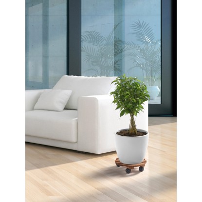 Az OBI gurulós virágtartó lakótérben és téli kertekben egyaránt használható, és különösen dekoratív. Így egy egyszerű átrendezéskor vagy takarításkor erőfeszítés nélkül tolhatja el a növényeket. A 4 önbeálló görgőnek köszönhetően tetszés szerint mozgathatja növényeit a lakásban.