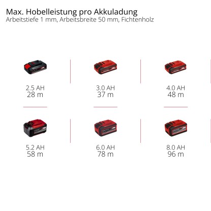 Az akkus gyalut a Power X-Change család 18 V-os lítium-ion akkumulátora táplálja. Az akkumulátorok kompatibilisek a sorozat összes készülékével, és így rugalmasan használhatók. Az akkumulátor töltési állapotát 3 LED jelzi. A modern lítium-ion technológiának köszönhetően az akkumulátorok nem hajlamosak a memóriahatásra, és a megfelelő gyorstöltővel nagyon rövid időn belül újratölthetők.