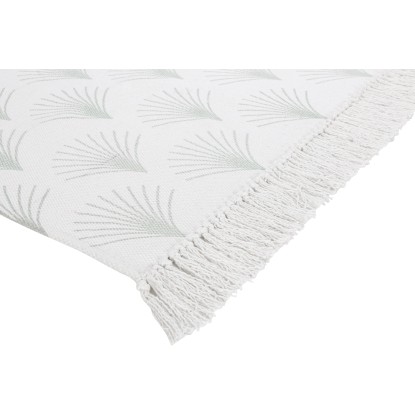 Ez a szőnyeg modern megjelenést és praktikus funkcionalitást visz otthonába - stílusos fénypontja lesz lakóhelyiségeinek. Elegáns fehér alapárnyalatával és mentaszínű mintájával minden helyiségnek friss és stílusos légkört kölcsönöz. A mindkét végén lévő fehér rojtok kiemelik a modern megjelenést, és egy leheletnyi könnyedséget biztosítanak. 60 cm x 120 cm-es formátumának köszönhetően ideálisan illeszkedik kisebb lakóhelyiségekbe, folyosókra vagy kedvenc bútordarabja előtt is. A szőtt szőnyeg körülbelül 5 mm boholymagasságával kellemesen sima, így tökéletesen alkalmas a mindennapi használatra.