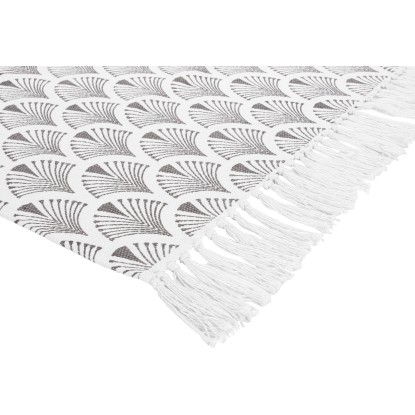 A 60 cm x 90 cm méretű, fehér-szürke mintás OBI pamut szőnyeg 100 %-ban pamutból készült. Ez a szép természetes anyag tökéletesen illik a berendezés stílusához. A nappaliban vagy a folyosón elhelyezve is kellemes légkört teremt otthonában. A modern mintázat és a világos rojtok különlegesen figyelemfelkeltőek.