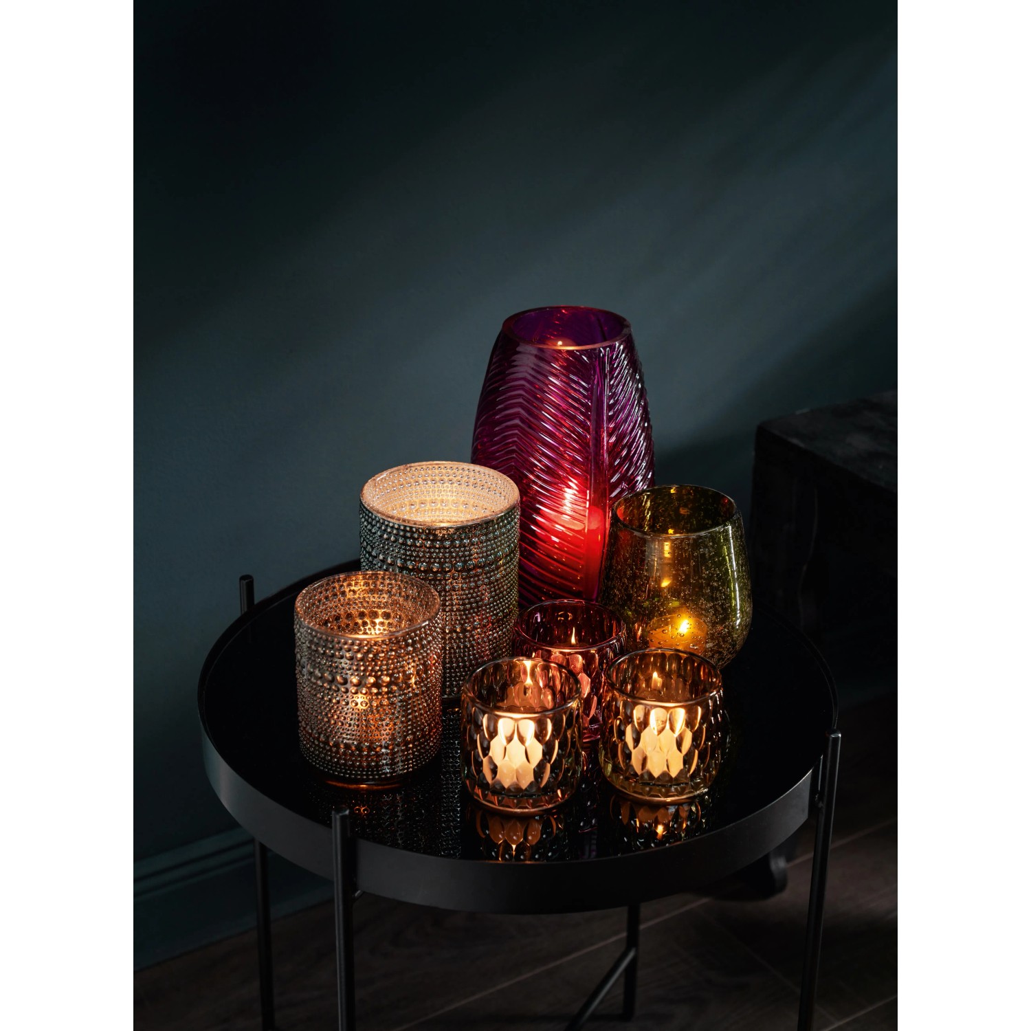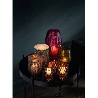 A Dark Wonder trendkollekció teamécses tartója dekoratív megjelenést kölcsönöz az asztalra, a komódra és a polcra. Teamécsessel kombinálva a berendezéseknek kellemes hangulatot teremt. Érdekes felületi struktúrájával a mécses gyönyörű látványt nyújt a szobában. Modern megjelenését a zöld színű kivitel hangsúlyozza. A teamécses tartó üvegből készült. Magassága 12,5 cm, átmérője pedig 10 cm.
