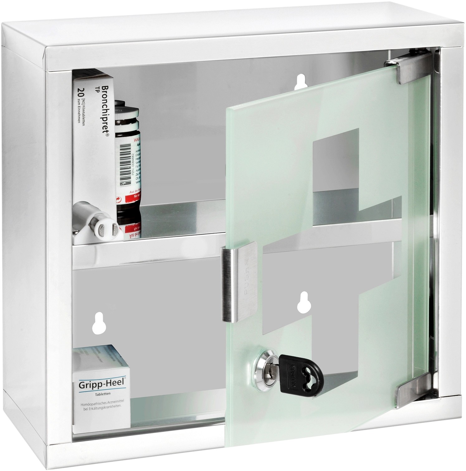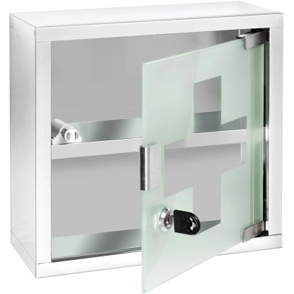 A dekoratív Wenko gyógyszeres szekrény nemes, időtálló formatervezésével ízlésesen illeszkedik minden berendezéshez. A szekrény fényes, rozsdamentes acélból készül, és így garantálja a kiváló minőséget. Ezenkívül sok helyet nyújt a gyógyszereknek vagy akár kozmetikumoknak vagy más fürdőszobai kelléknek is. A szatinált biztonsági üvegből készült, zárható ajtónak köszönhetően orvosságait és kellékeit biztonságosan tudja tárolni és gyermekei elől elzárni. A csomag tartalmát képező csavarok és dübelek segítségével a szekrény nagyon egyszerűen felszerelhető a falra.