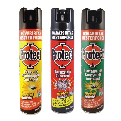 A Protect csótány- és hangyairtó aeroszol a rovarok búvóhelyeire és vonulási útjatira kiporlasztva egyszerű használatot és azonnali, 6 héten át tartó ölőhatást biztosít. A termék az összes rejtett életmódú rovar (csótány, hangya stb.) ellen hatékony védelmet nyújt. Emberrel és melegvérű állatokkal szemben ártalmatlan.