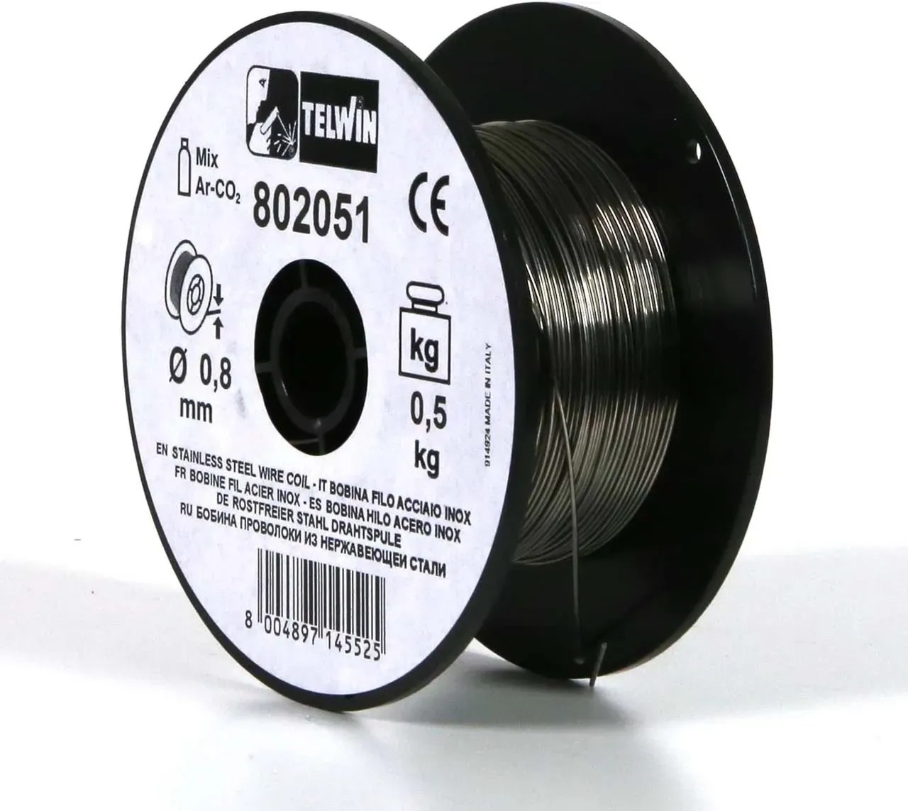 MIG védőgázas hegesztőgépekhez használható huzal. Rozsdamentes anyagokat lehet vele hegeszteni. 0,8 mm huzal átmérő, 0,5 kg-os kiszerelés, 100 mm átmérőjű dobra tekercselve. Kevert Argon-CO2 gáz használata ajánlott hozzá.