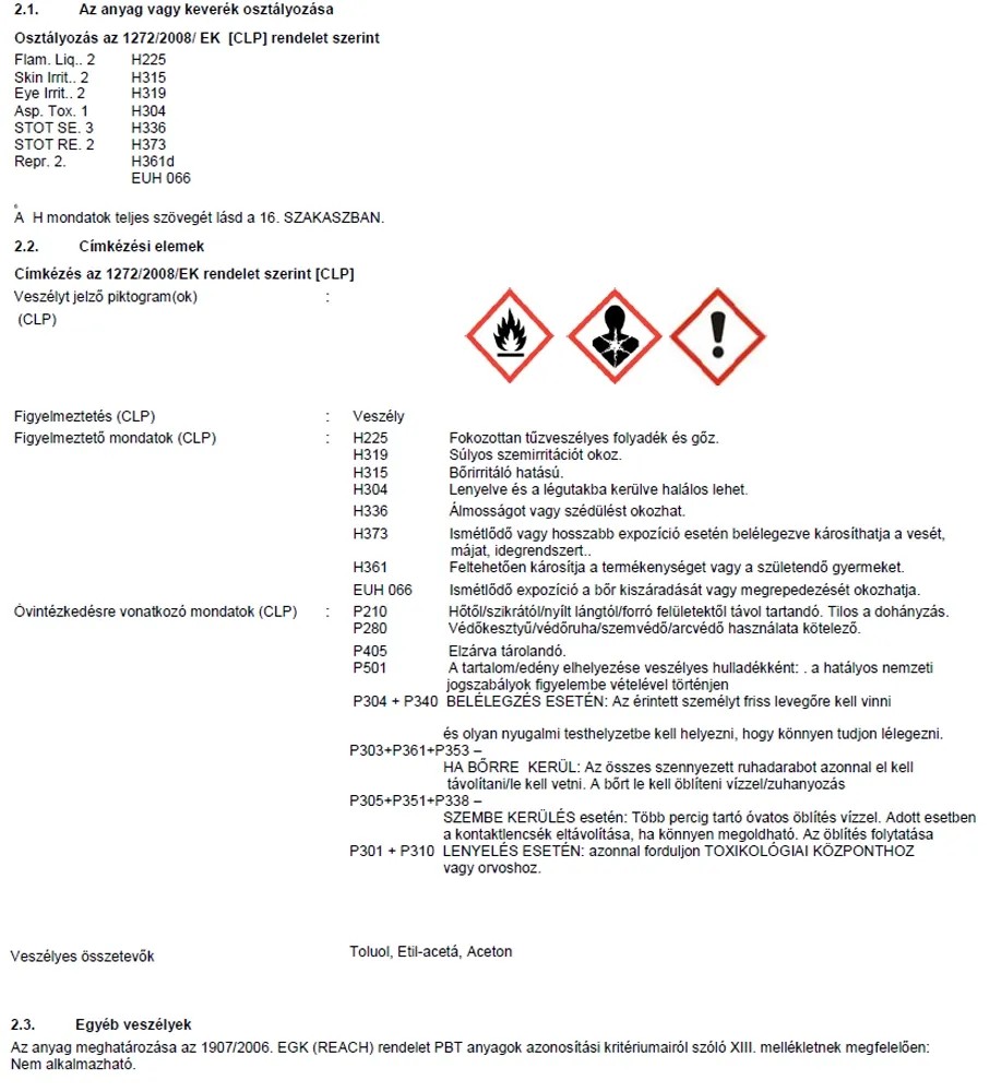 Nitro- és nitrokombinációs festékek, illetve lakkok felhordási konzisztenciájának beállítására, valamint hígítására szolgál. Hatékonyan távolítja el a lecsepegett festékeket a padlóról, továbbá a festőeszközök elmosására is alkalmazható. Fontos az előírt mennyiségek betartása. Szórásos felhordással több, ecseteléssel és hengereléssel pedig kevesebb hígító szükséges. Használat során védőkesztyű, arcvédő, szemvédő, védőruha használata kötelező!