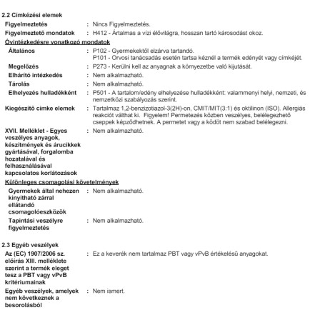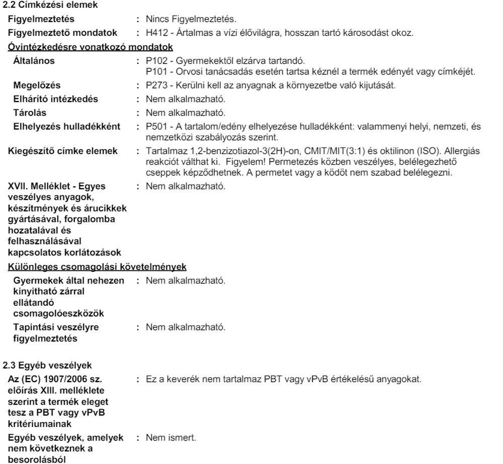 | Alk. gyermekjátékhoz (DIN EN 71-3 bevizsg.): | Gyermekjátékhoz nem alkalmas |