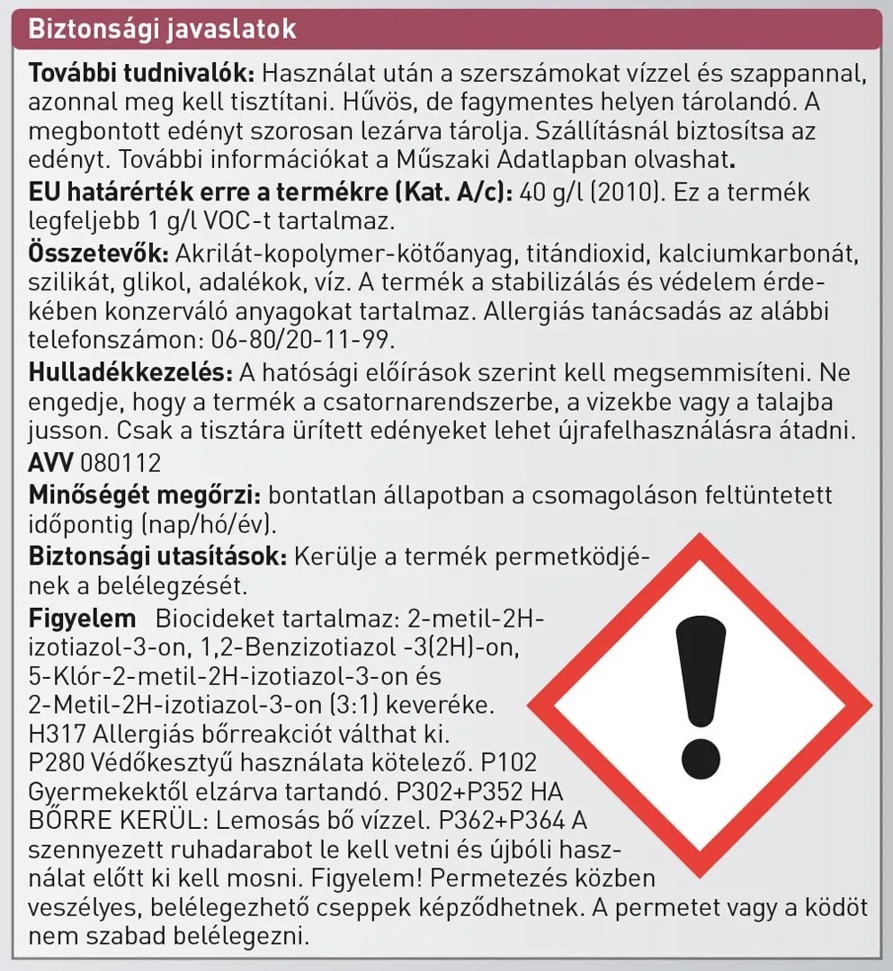 | Ideálisan alkalmas: | Vakolat, Beton, Falazat |