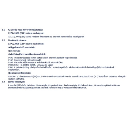 | Fogyasztás m²-enként, ml-ben: | 12 ml |