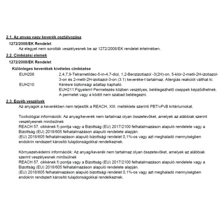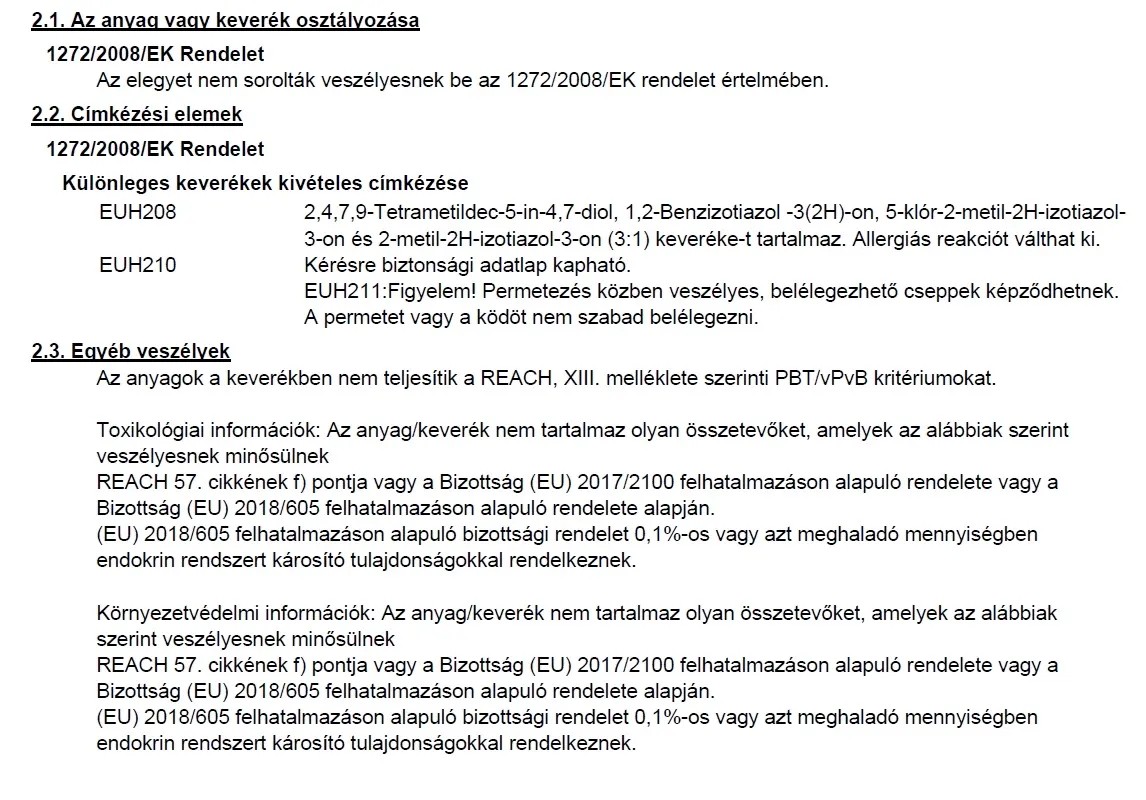 | Izotiazolinonra allergiásoknak is alkalmas: | Nem alkalmas |